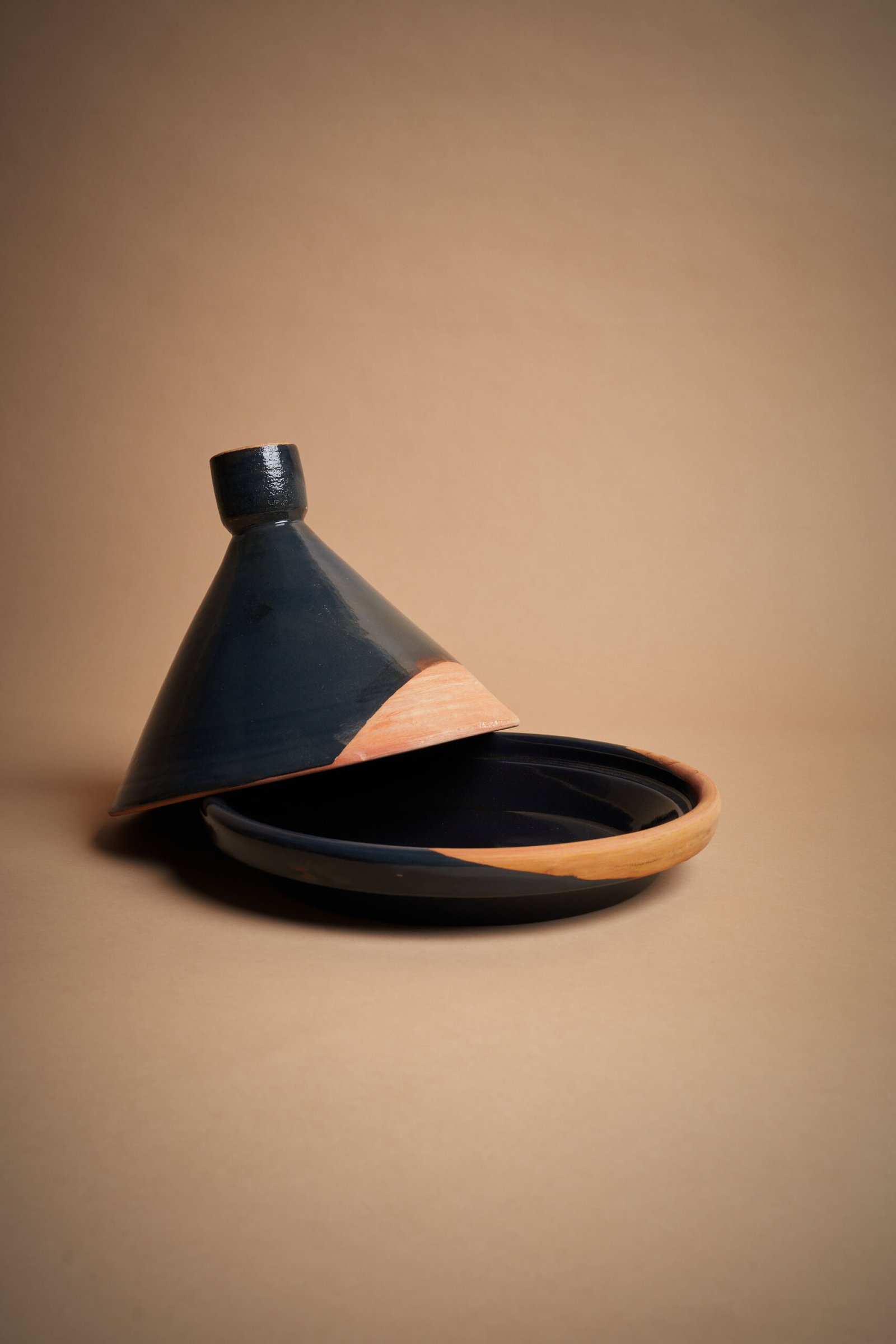 Handcrafted ceramic tajine with an authentic design and glossy dark blue finish, perfect for cooking and serving traditional Moroccan dishes. Made with high-quality materials, it ensures healthy and even cooking. Ideal for adding a touch of style and culture to your table. Discover the excellence and uniqueness of Moroccan craftsmanship.