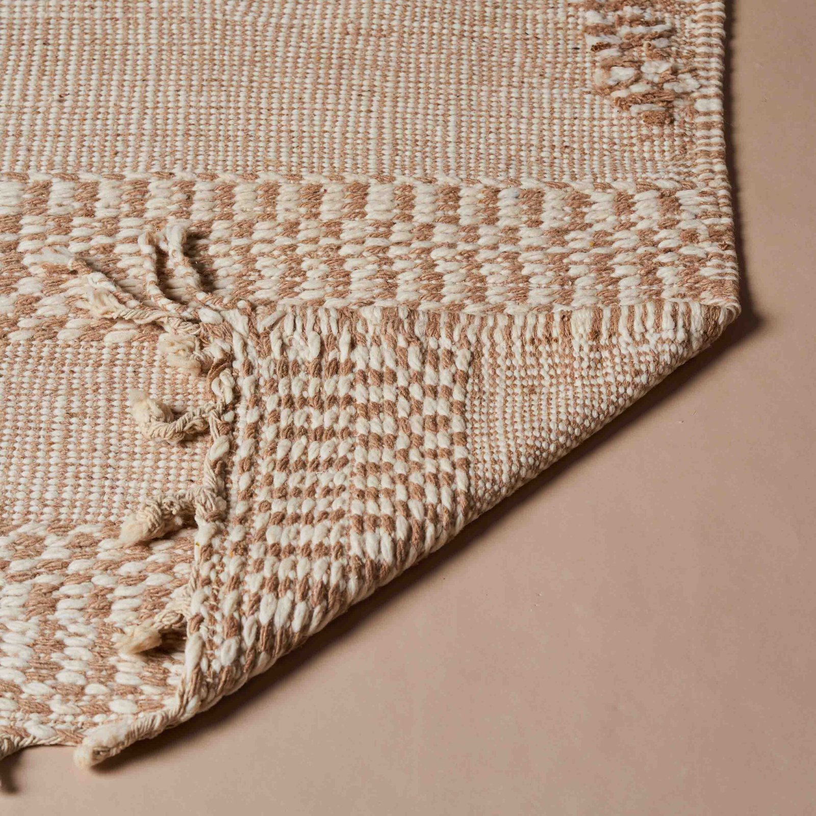 VAT incl.This elegant handcrafted Kilim rug features a refined monochromatic beige design, enhanced by raised textile details that create a captivating three-dimensional effect. Made from high-quality natural materials, it brings warmth and authenticity to any space. Perfect for minimalist or rustic interiors, it highlights the charm of traditional craftsmanship.