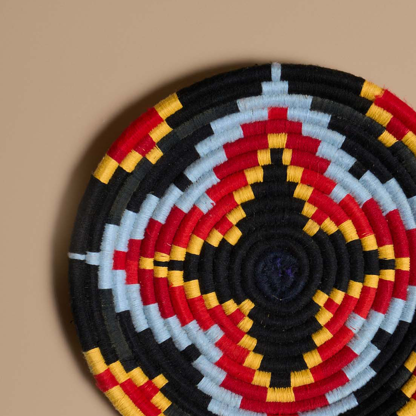 Cette assiette marocaine, confectionnée en osier et en laine colorée, se caractérise par des nuances vibrantes de rouge, jaune et noir, avec une pointe de bleu ciel qui apporte fraîcheur et luminosité. Les motifs géométriques traditionnels créent un design audacieux et dynamique, idéal pour décorer murs, tables ou étagères. Pièce unique, fruit du savoir-faire des artisans marocains, elle marie tradition et modernité dans chaque détail. Sa combinaison de couleurs vives la rend polyvalente et adaptée à divers styles d’intérieur. Elle ajoute une touche d’élégance, de personnalité et d’authenticité à tout environnement, transformant les espaces avec style.