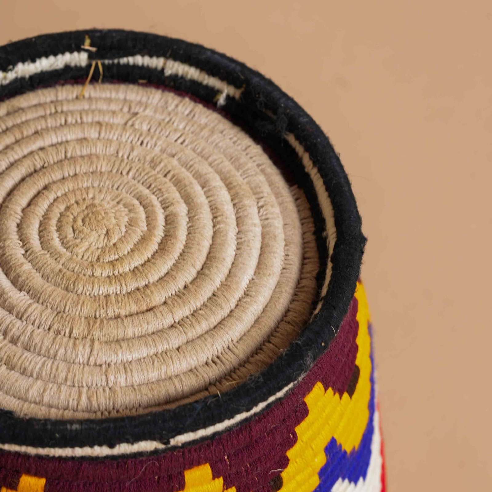 Ce vase berbère tissé à la main, fabriqué avec des fibres de palmier naturel, présente différentes nuances de couleurs en parfaite harmonie, créant un contraste délicat et raffiné. Le design géométrique, tissé avec des fils de laine, reflète la tradition marocaine, avec des motifs en zig-zag et des bandes horizontales. Idéal pour ceux qui recherchent un élément décoratif qui ajoute chaleur et style à n'importe quel espace, ce vase allie fonctionnalité et beauté. Il peut être utilisé comme contenant pour des objets quotidiens ou comme pièce décorative distinctive, apportant une touche d'élégance et d'authenticité marocaine à chaque espace.