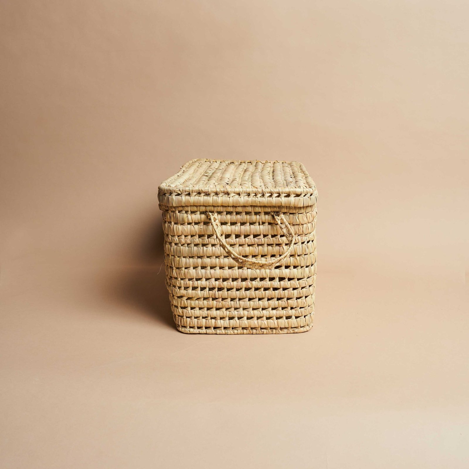 Cesta intrecciata a mano con foglia di palma, perfetta per arricchire la casa con un tocco naturale e armonioso. Il pratico coperchio protegge il contenuto dalla polvere, mentre le robuste maniglie laterali facilitano lo spostamento. Questo accessorio versatile è ideale per riporre biancheria, accessori, giocattoli o riviste, mantenendo l’ordine con stile. Il suo design essenziale si adatta a ogni ambiente, dal boho chic all’eco-friendly, esaltando l’arredamento con eleganza. La fibra di palma assicura durabilità e sostenibilità, rendendola una scelta intelligente per chi desidera unire funzionalità, estetica e rispetto per l’ambiente.