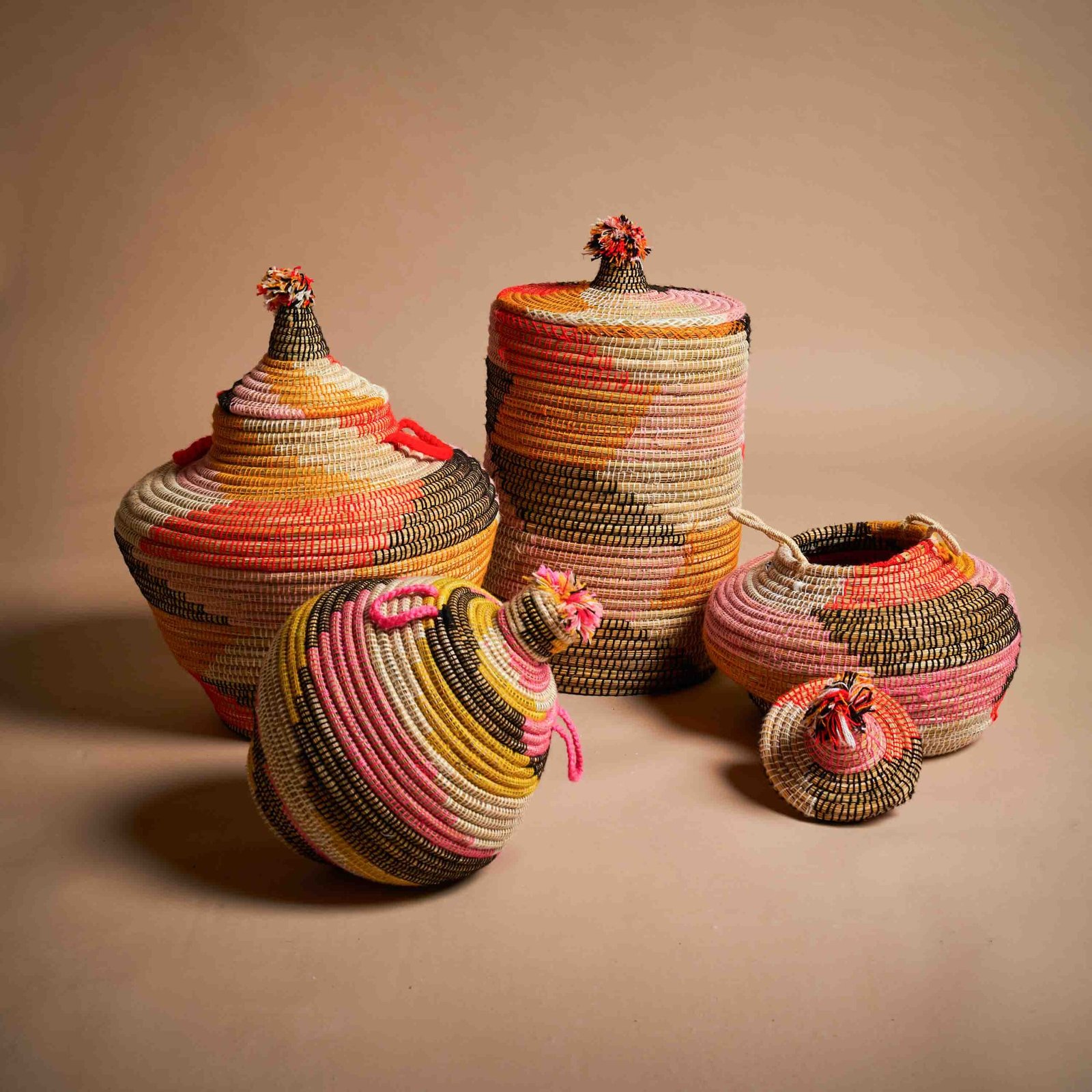 Cesta rotonda realizzata in fibra naturale e lana, con un intreccio che unisce tradizione e creatività. I colori caldi e vibranti formano motivi geometrici armoniosi, perfetti per arricchire qualsiasi ambiente. Il pratico coperchio mantiene il contenuto protetto, rendendola ideale per organizzare accessori, biancheria e oggetti. Grazie alla sua versatilità, può essere utilizzata come elemento decorativo in soggiorni, camere da letto o ingressi. La lavorazione attenta valorizza i materiali, offrendo resistenza e lunga durata. Un complemento funzionale e di carattere, che dona stile agli spazi, combinando design e utilità in una perfetta sintesi di estetica e praticità.