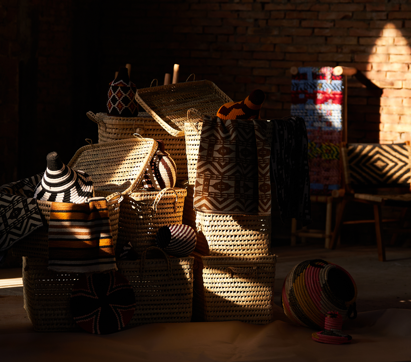 IVA incl.Cesta in fibra naturale e lana, intrecciata con motivi geometrici dai toni caldi. Il coperchio mantiene il contenuto al sicuro, rendendola perfetta per riporre oggetti come accessori e biancheria. Design elegante e versatile, ideale per arredare soggiorni, camere da letto o ingressi con un tocco di funzionalità e stile.
