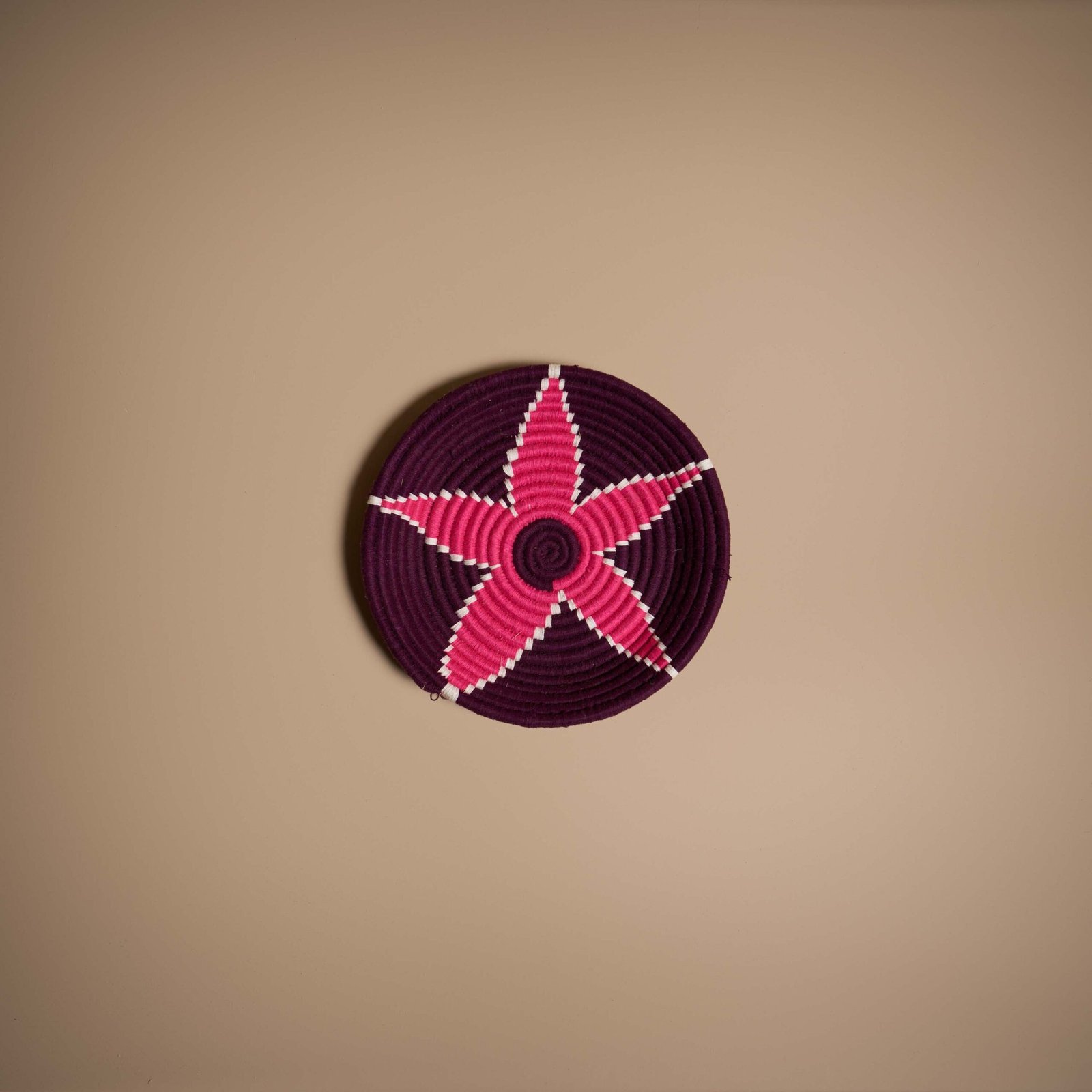 IVA incl.Questo piatto marocchino intrecciato a mano in vimini e lana colorata è un elemento decorativo unico, caratterizzato da motivi geometrici nei toni bordeaux e fucsia. Perfetto per arricchire ambienti interni, aggiunge personalità e colore a pareti e tavoli, creando un’atmosfera calda, accogliente e piena di stile.