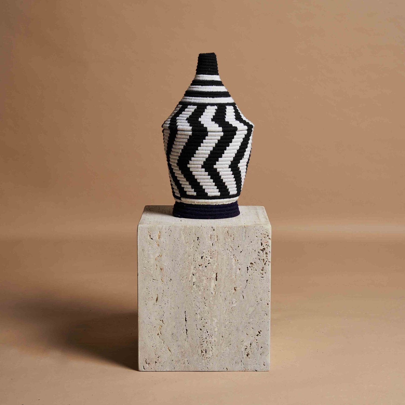 Vaso intrecciato a mano in fibra naturale e lana