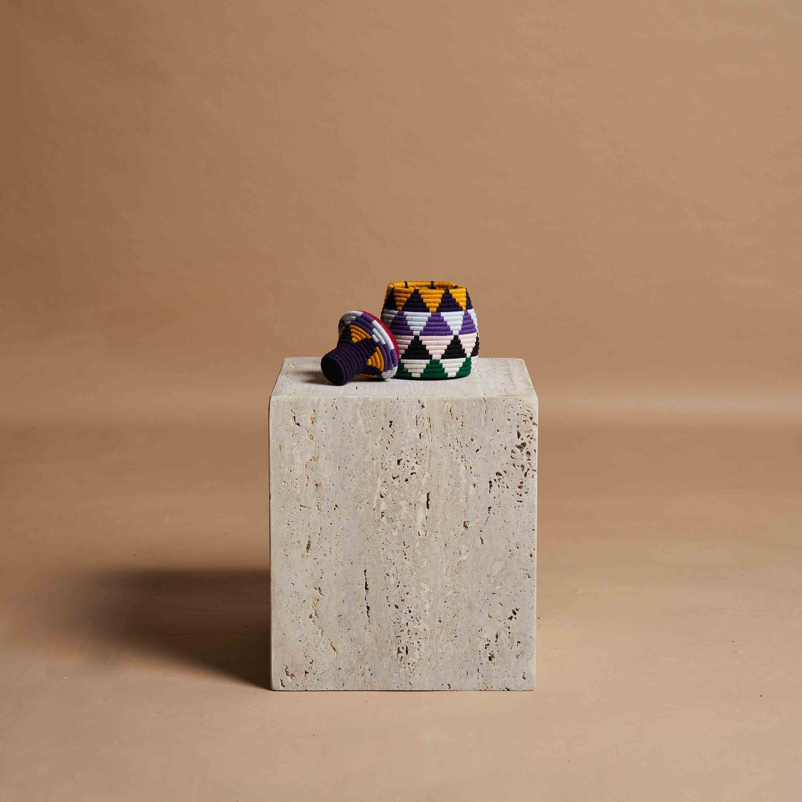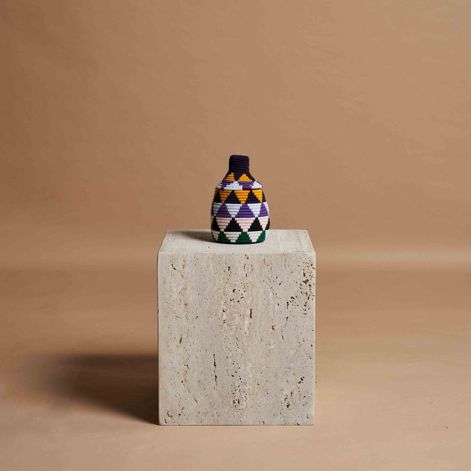 L’arte berbera di intrecciare a mano vasi con fibre di palma naturale e fili di lana colorata è un esempio straordinario di tradizione e innovazione. Ogni pezzo è realizzato con dedizione, combinando materiali semplici ma robusti per creare opere d’arte uniche. Le tonalità vivaci di lana, come il rosso, il blu e il verde, vengono intrecciate con precisione, formando motivi geometrici che riflettono la cultura e la storia del popolo berbero. Questi vasi non sono solo elementi decorativi, ma veri e propri testimoni di una maestria che trasmette autenticità, calore e un senso di connessione con la natura.