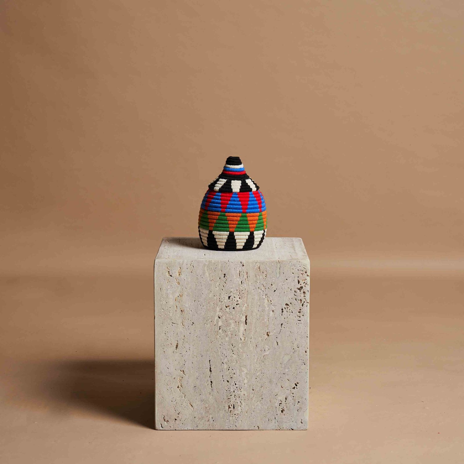 L’arte berbera di intrecciare a mano vasi con fibre di palma naturale e fili di lana colorata è un esempio straordinario di tradizione e innovazione. Ogni pezzo è realizzato con dedizione, combinando materiali semplici ma robusti per creare opere d’arte uniche. Le tonalità vivaci di lana, come il rosso, il blu e il verde, vengono intrecciate con precisione, formando motivi geometrici che riflettono la cultura e la storia del popolo berbero. Questi vasi non sono solo elementi decorativi, ma veri e propri testimoni di una maestria che trasmette autenticità, calore e un senso di connessione con la natura.