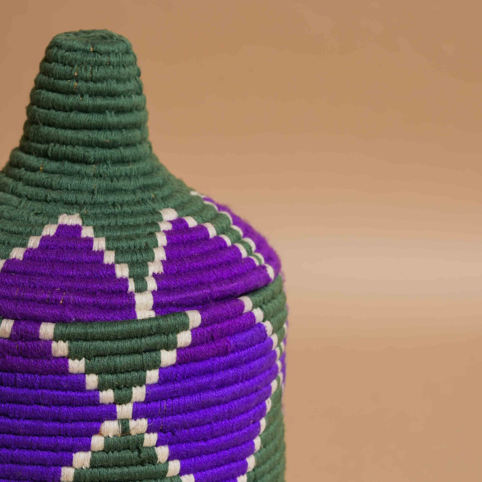 Questo vaso berbero intrecciato a mano è una straordinaria opera di artigianato tradizionale marocchino. Le sue tonalità predominanti di verde intenso e viola, avvolgono il design con eleganza e vivacità, creando un contrasto accattivante. Realizzato con fibre di palma naturale e arricchito da fili di lana colorati, il vaso presenta motivi geometrici ispirati alla cultura berbera. Perfetto per decorare ambienti moderni o tradizionali, questo vaso unisce funzionalità e bellezza. Ideale per conservare oggetti o come elemento decorativo, rappresenta una fusione unica di arte, tradizione e stile marocchino.