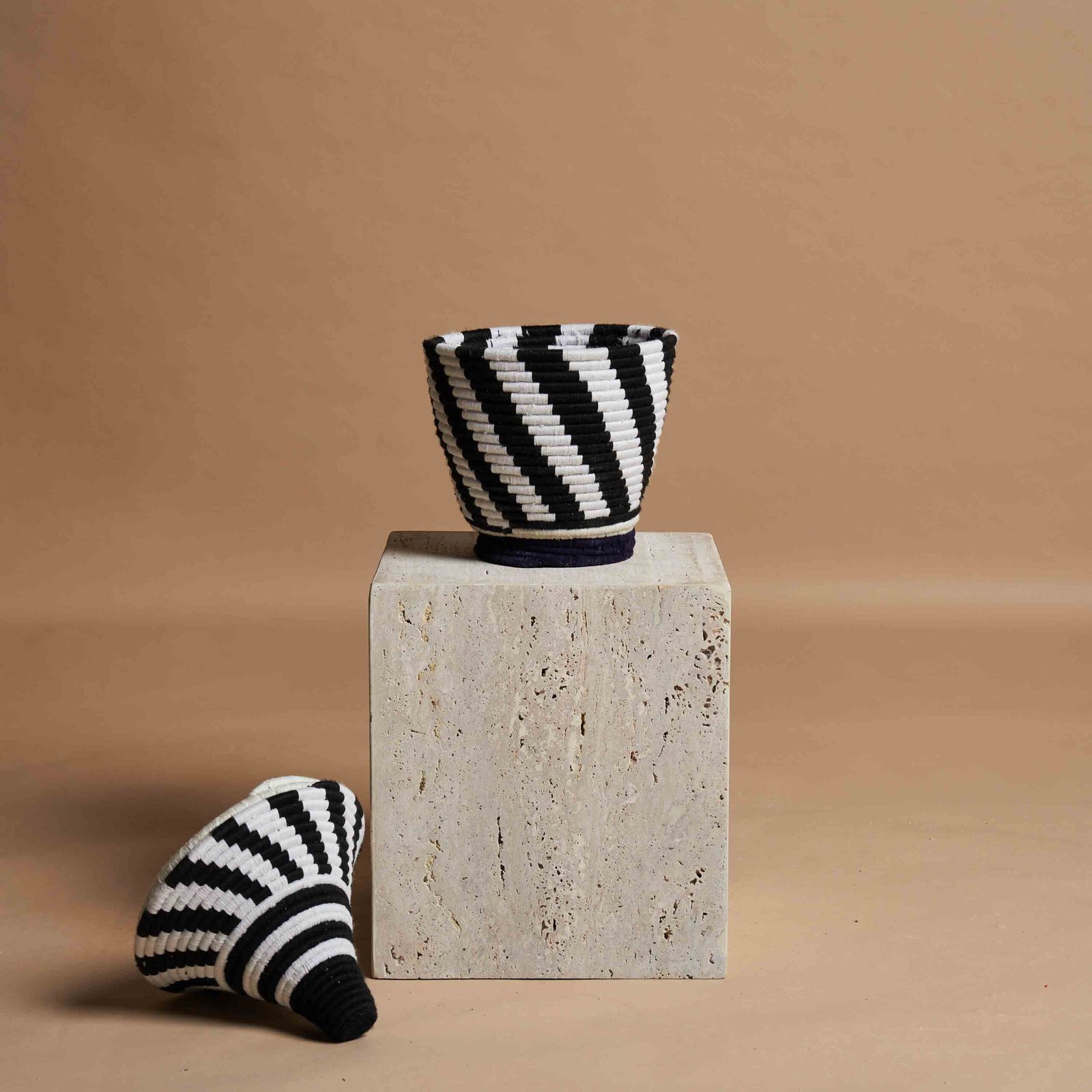 L’arte berbera di intrecciare a mano vasi con fibre di palma naturale e fili di lana colorata è un esempio straordinario di tradizione e innovazione. Ogni pezzo è realizzato con dedizione, combinando materiali semplici ma robusti per creare opere d’arte uniche. Le tonalità vivaci di lana, come il rosso, il blu e il verde, vengono intrecciate con precisione, formando motivi geometrici che riflettono la cultura e la storia del popolo berbero. Questi vasi non sono solo elementi decorativi, ma veri e propri testimoni di una maestria che trasmette autenticità, calore e un senso di connessione con la natura.