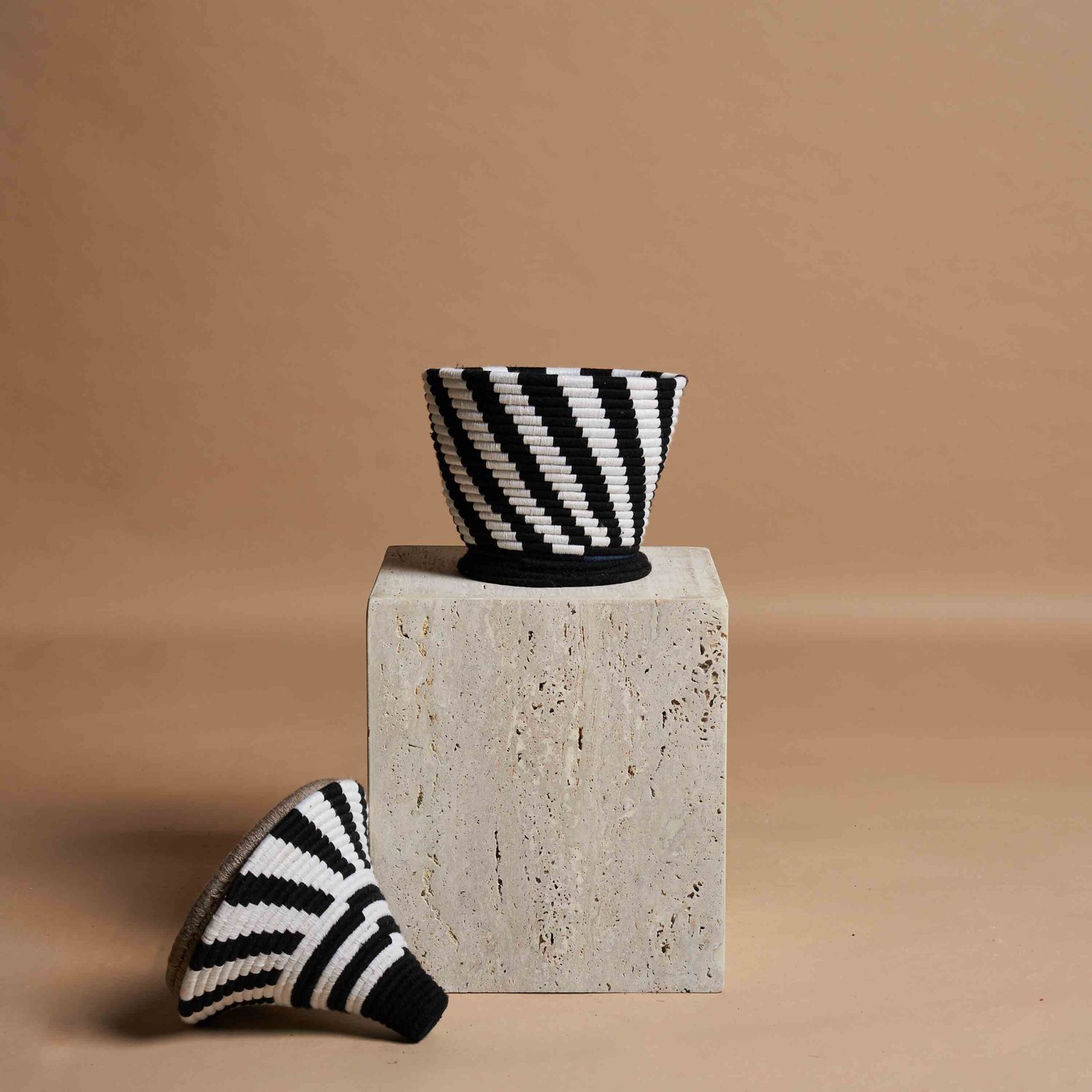 L’arte berbera di intrecciare a mano vasi con fibre di palma naturale e fili di lana colorata è un esempio straordinario di tradizione e innovazione. Ogni pezzo è realizzato con dedizione, combinando materiali semplici ma robusti per creare opere d’arte uniche. Le tonalità vivaci di lana, come il rosso, il blu e il verde, vengono intrecciate con precisione, formando motivi geometrici che riflettono la cultura e la storia del popolo berbero. Questi vasi non sono solo elementi decorativi, ma veri e propri testimoni di una maestria che trasmette autenticità, calore e un senso di connessione con la natura.