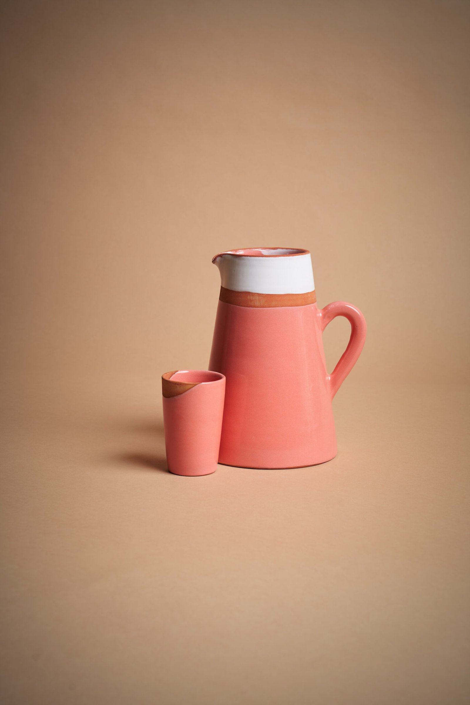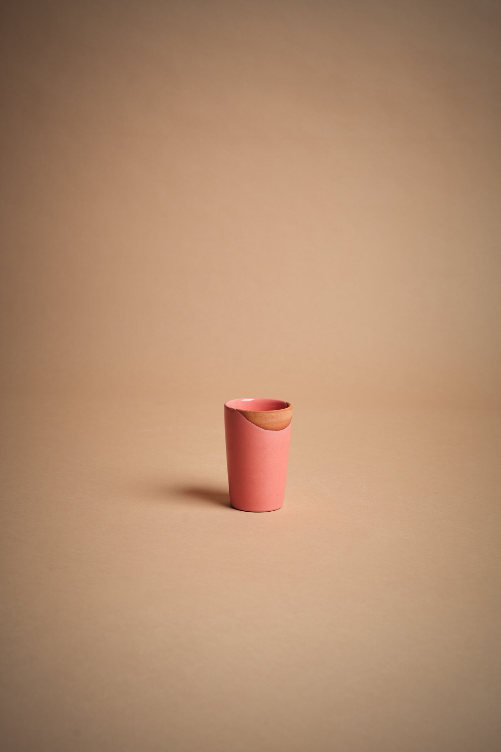 IVA incl.Bicchiere conico in ceramica artigianale, con superficie lucida rosa e sezione naturale non smaltata. Perfetto per servire bevande calde o fredde, offre un design elegante e moderno. Modellato a mano, aggiunge un tocco sofisticato alla tua tavola. Un bicchiere distintivo che unisce estetica e funzionalità senza tempo.