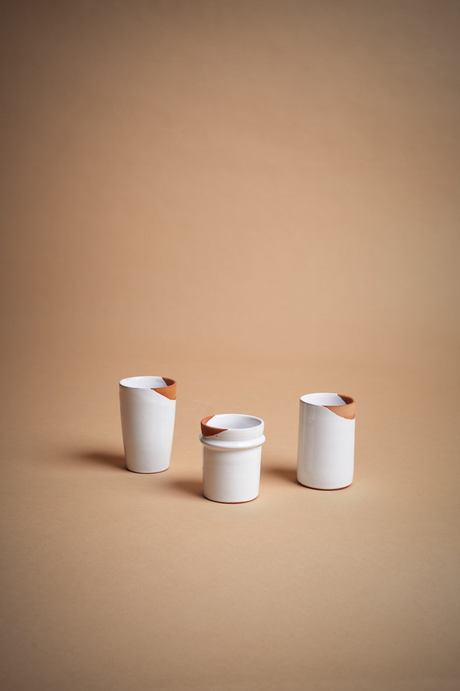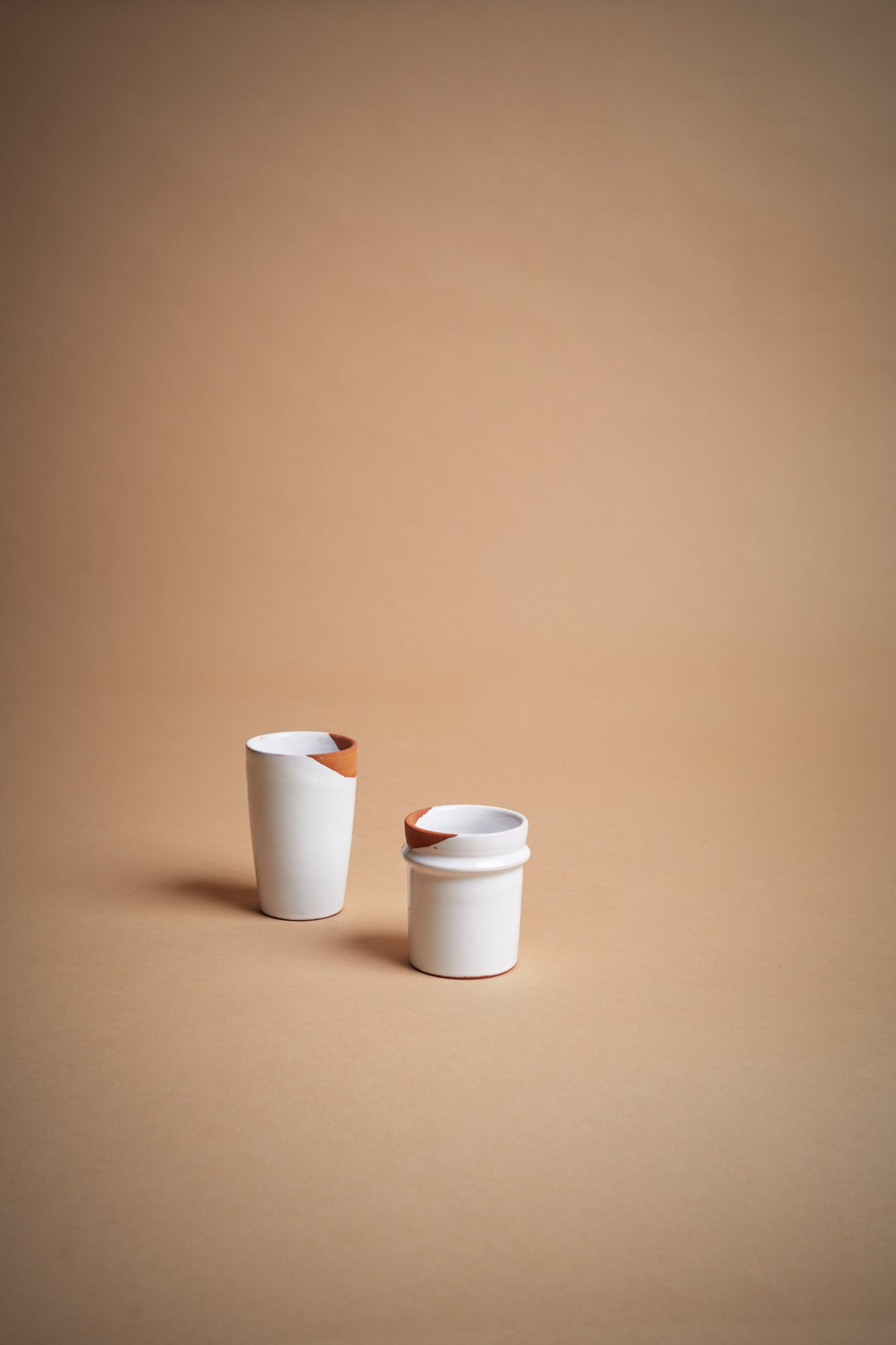 IVA incl.Bicchiere marocchino da tè in ceramica artigianale con finitura lucida bianca e sezione naturale non smaltata. Perfetto per servire tè alla menta o altre bevande, il design tradizionale e raffinato aggiunge un tocco esotico alla tavola. Modellato a mano, ogni bicchiere unisce autenticità e stile senza tempo.