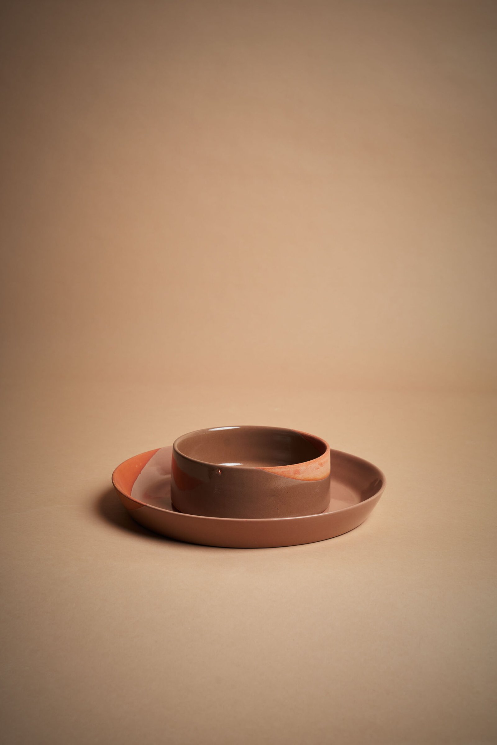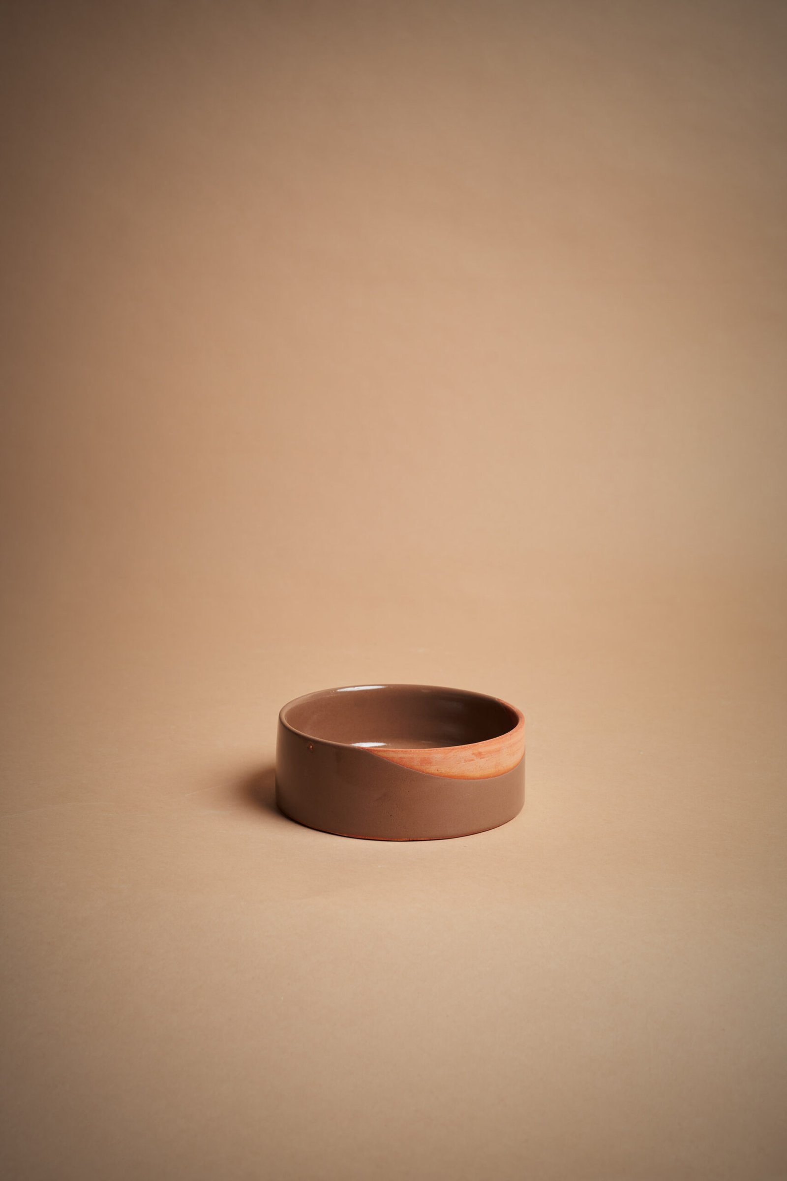 Bowl in ceramica artigianale dal design elegante e raffinato, modellata e rifinita a mano. La superficie lucida color marrone si combina con una fascia naturale non smaltata, creando un contrasto visivo sofisticato. Perfetta per servire cereali, insalate o zuppe, aggiunge un tocco di stile autentico alla tavola.