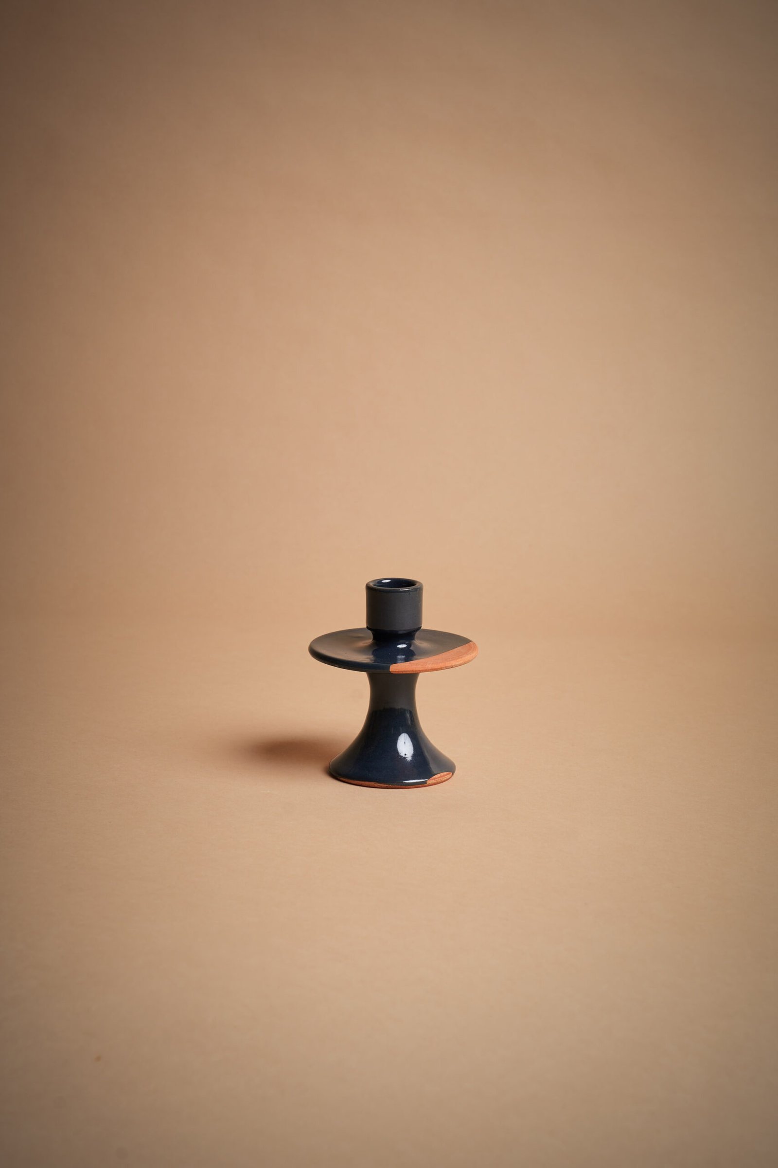 Elegante portacandele in ceramica artigianale, dal design sofisticato. La finitura scura lucida si armonizza con il dettaglio in terracotta naturale, creando un contrasto raffinato. Perfetto per creare atmosfere accoglienti e romantiche, si adatta a qualsiasi ambiente, dall’arredo moderno a quello classico. Un complemento decorativo unico e fatto a mano.