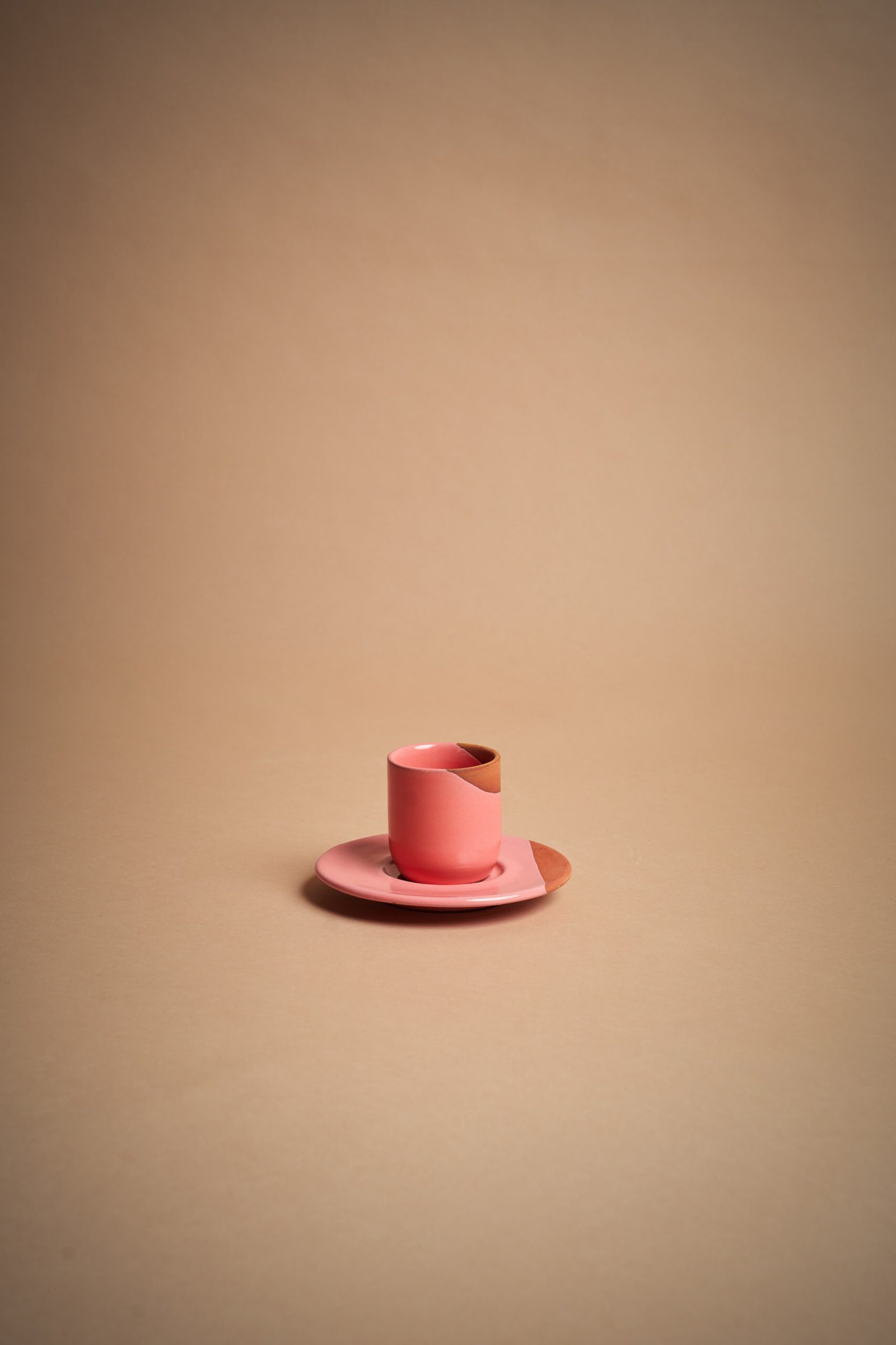 IVA incl.Tazzina da caffè in ceramica artigianale con piattino coordinato, caratterizzata da una superficie lucida rosa e sezione naturale non smaltata. Perfetta per un caffè elegante, unisce stile e funzionalità. Modellata a mano, aggiunge autenticità alla tua tavola, ideale per chi cerca un tocco raffinato e contemporaneo nella pausa caffè.