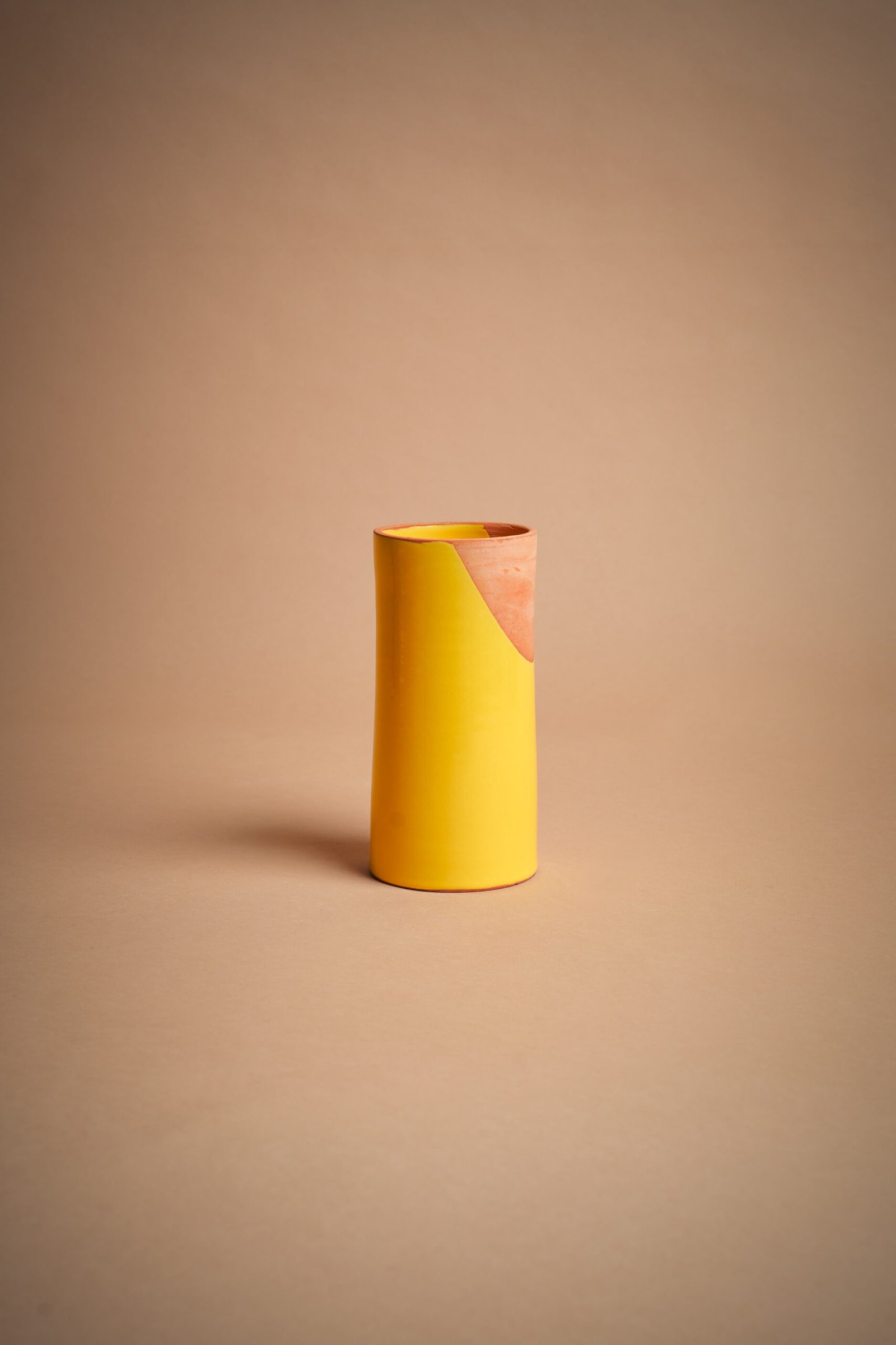 IVA incl.Vaso cilindrico con bocca stretta in ceramica artigianale, caratterizzato da una superficie lucida gialla e sezione naturale non smaltata. Perfetto per fiori freschi o secchi, aggiunge un tocco elegante alla tua casa. Modellato a mano, unisce stile e funzionalità. Un vaso unico, ideale per chi cerca autenticità e raffinatezza.