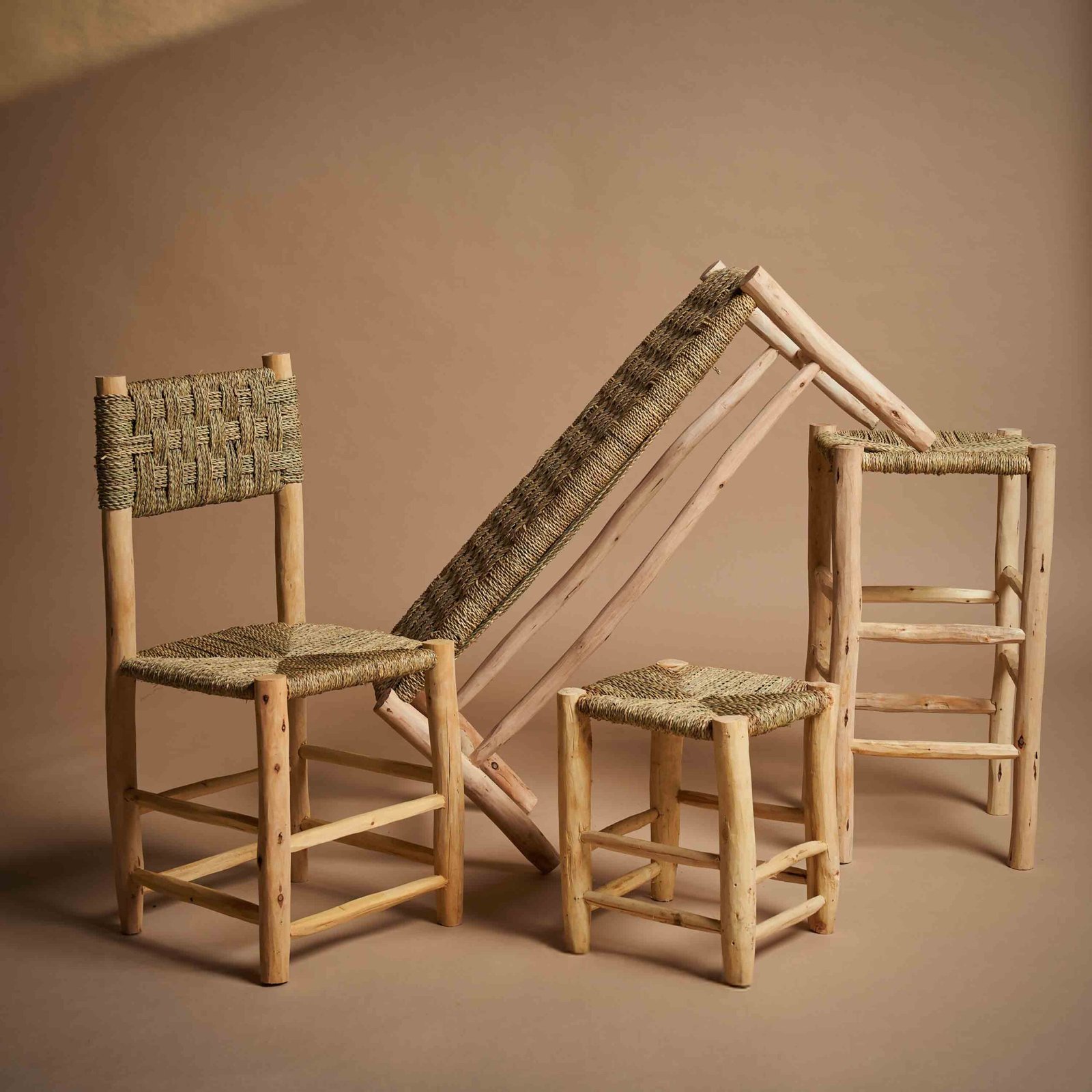 Legno e fibre naturali lavorati a mano, adatto anche per ambienti esterni.