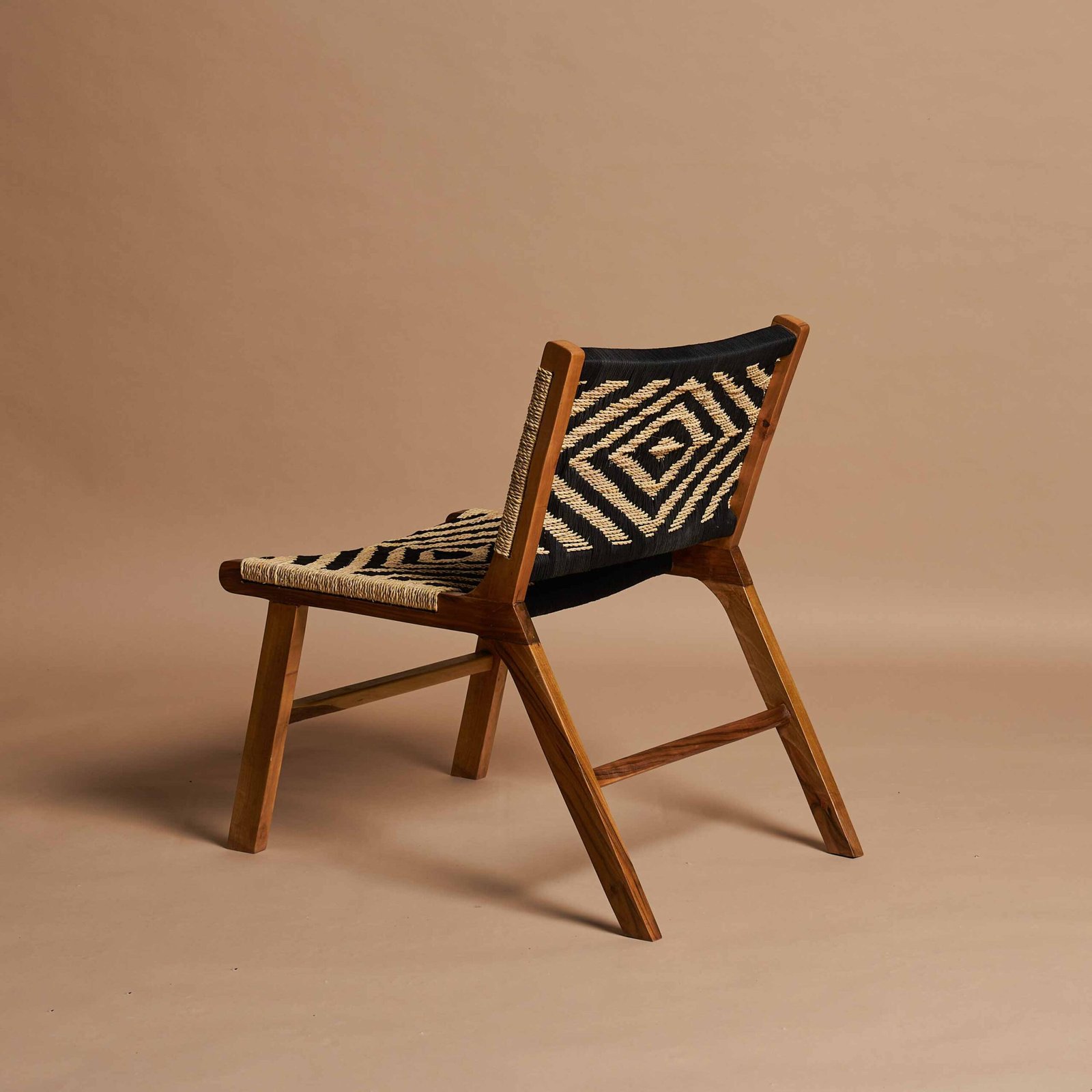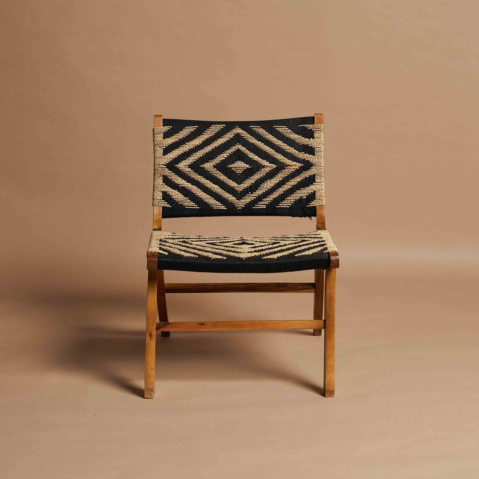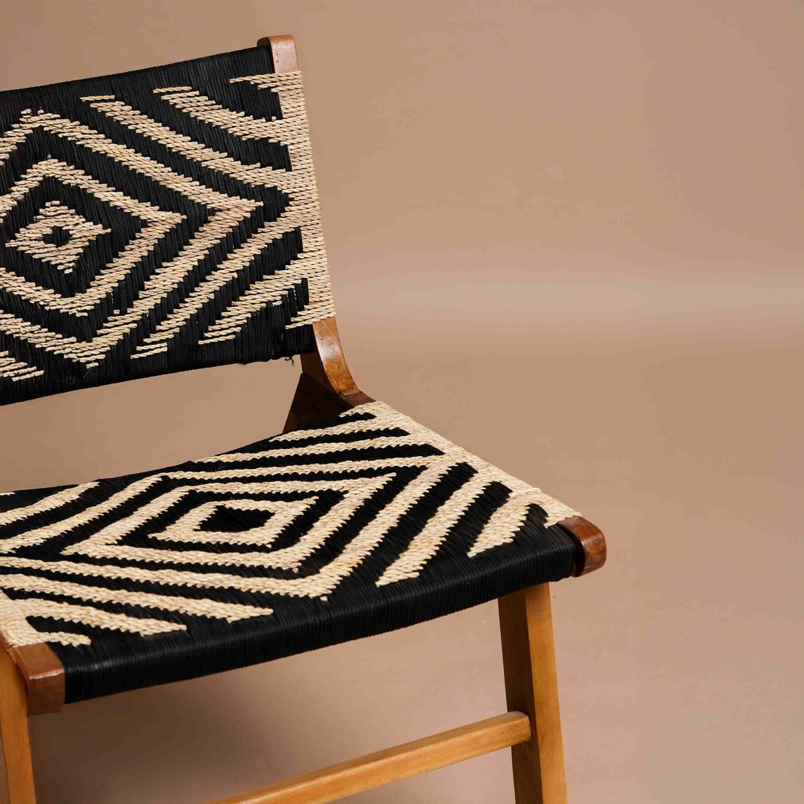 IVA incl.Poltroncina in legno naturale e paglia intrecciata a mano con motivo geometrico nero. Perfetta per soggiorni, camere o spazi esterni, offre comfort e robustezza. Il design compatto e versatile si adatta a vari stili, aggiungendo freschezza e stile. Un complemento elegante, funzionale e durevole per ogni ambiente.