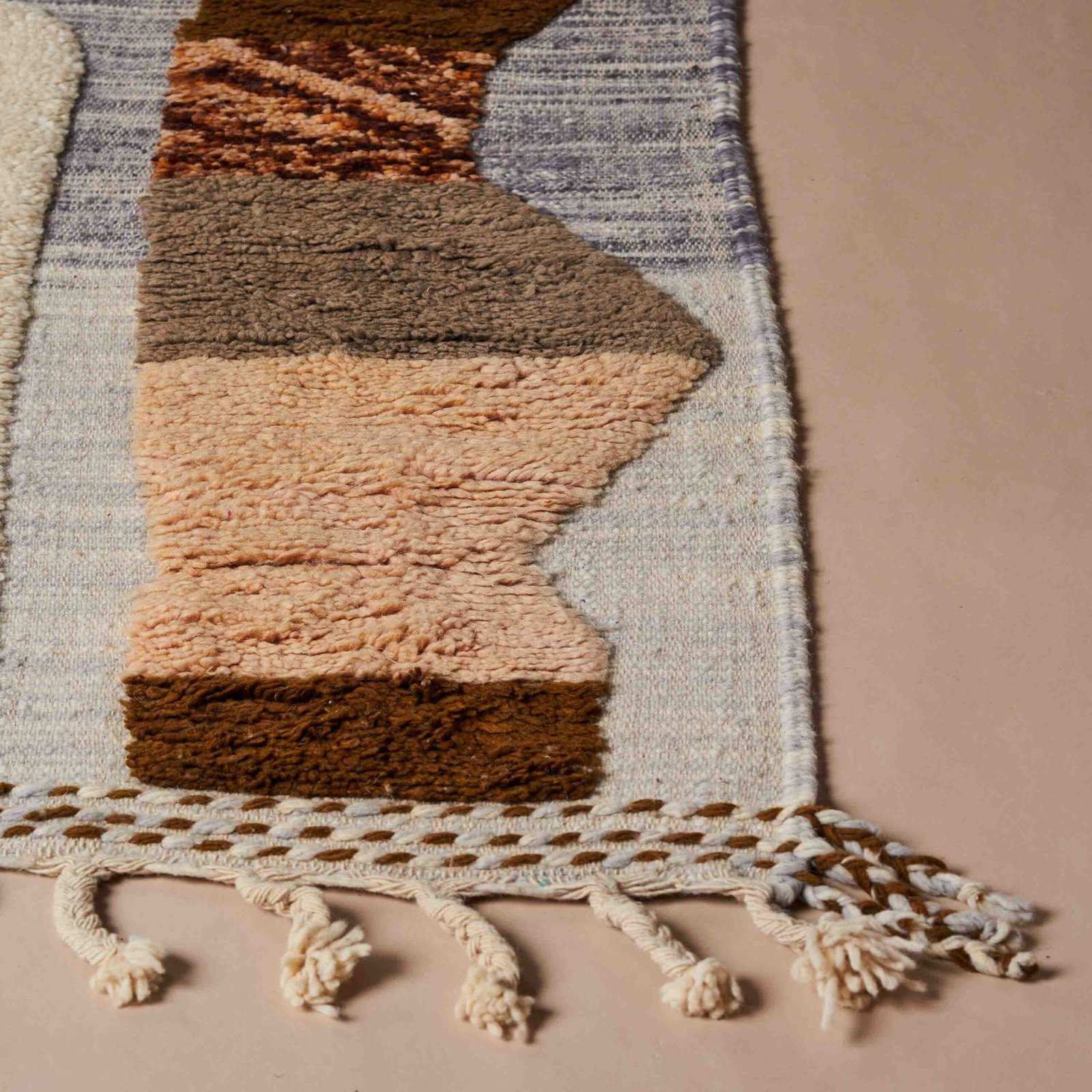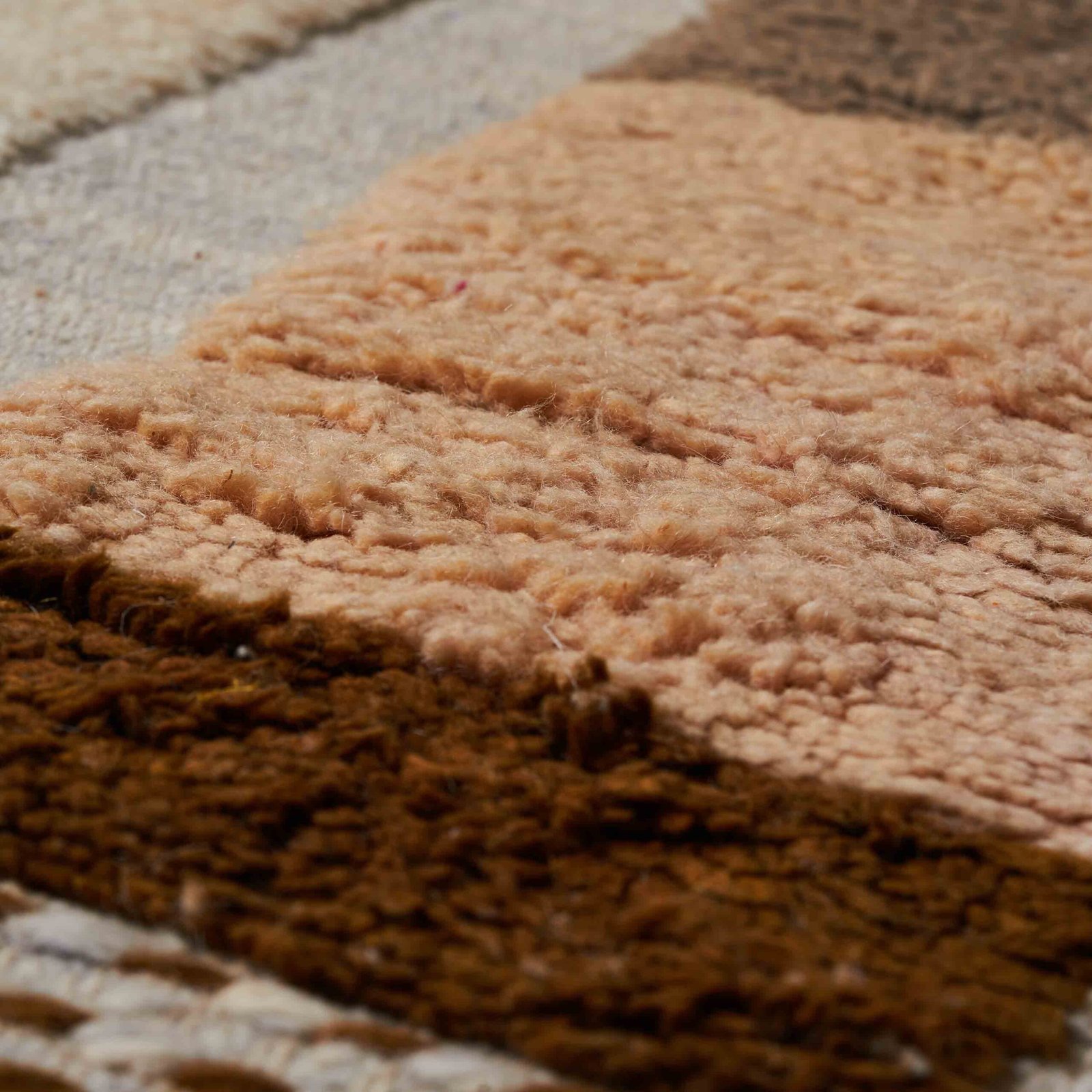 Questo splendido tappeto Beni Ouarain, intrecciato a mano con pura lana naturale, si distingue per il suo design unico e affascinante. Le tonalità calde che spaziano dal marrone al beige fino al terracotta creano un’atmosfera accogliente e raffinata. I motivi sinuosi e organici, caratteristici dell’artigianato marocchino, conferiscono al tappeto un’estetica elegante e contemporanea. Perfetto per arredare con stile salotti, camere da letto o spazi open-space, dona calore e personalità agli ambienti, sia moderni che rustici. La qualità artigianale e la morbidezza della lana lo rendono un complemento d’arredo esclusivo, sinonimo di comfort e design autentico.