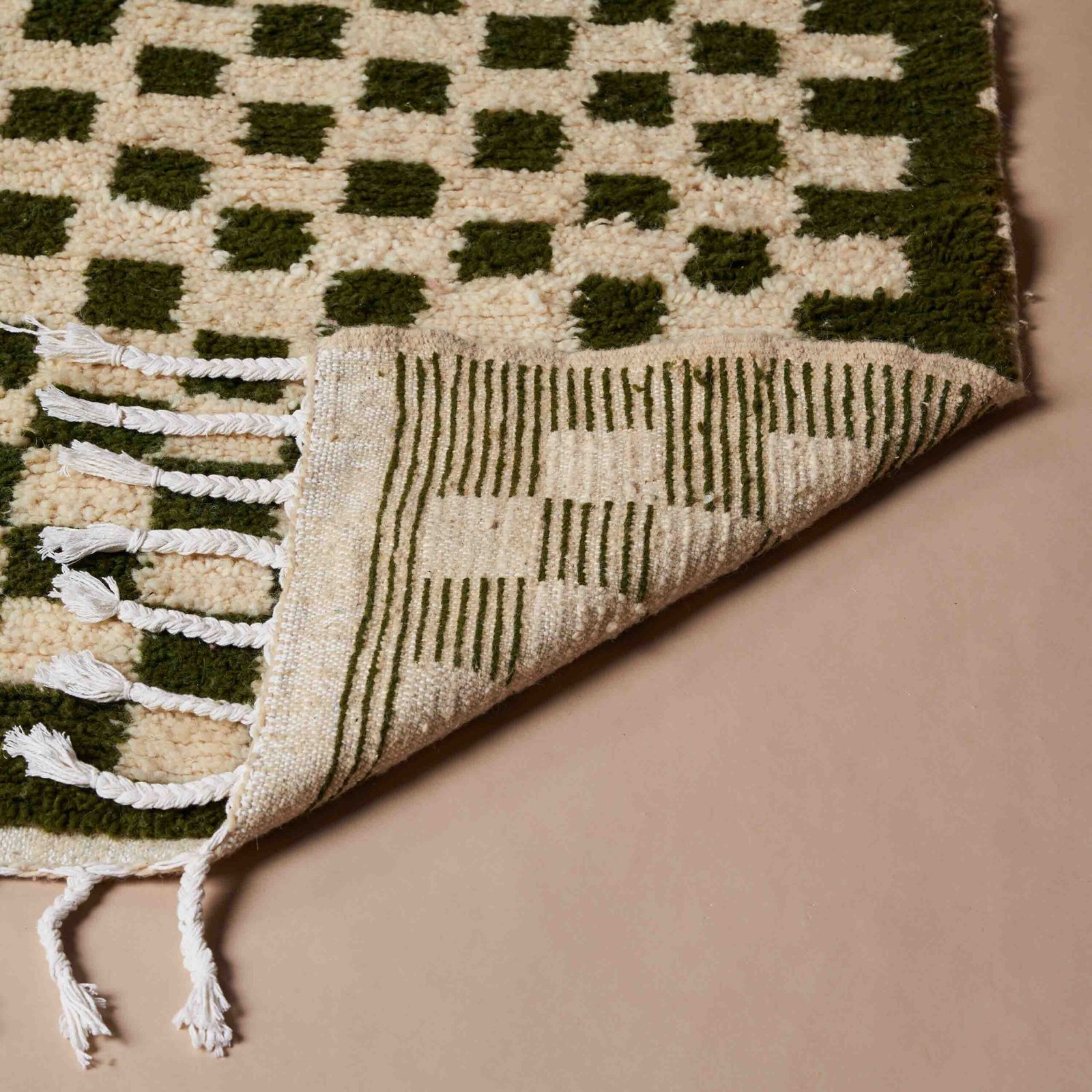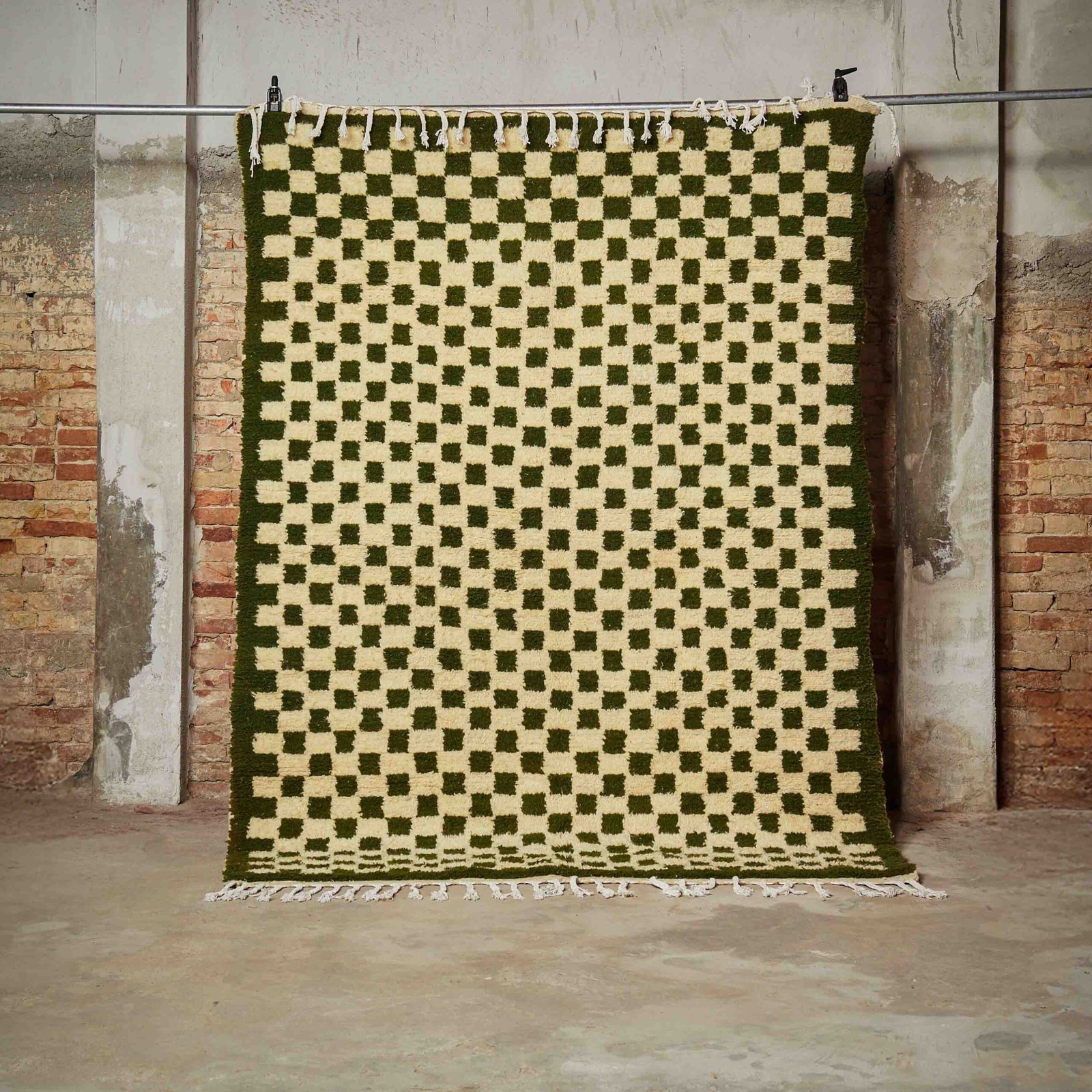 Questo tappeto Beni Ouarain fatto a mano unisce la tradizione tessile marocchina a un design contemporaneo, ideale per ambienti moderni ed eleganti. Realizzato con lana naturale di alta qualità, presenta un raffinato motivo a quadretti verde oliva su un fondo crema, che dona luminosità e calore agli spazi abitativi. La morbidezza delle fibre e la cura artigianale nella lavorazione assicurano un comfort unico e una lunga durata nel tempo. Perfetto per arredare salotti, camere da letto o studi con un tocco etnico ricercato, questo tappeto rappresenta un connubio tra autenticità e stile, aggiungendo personalità e fascino agli ambienti domestici.