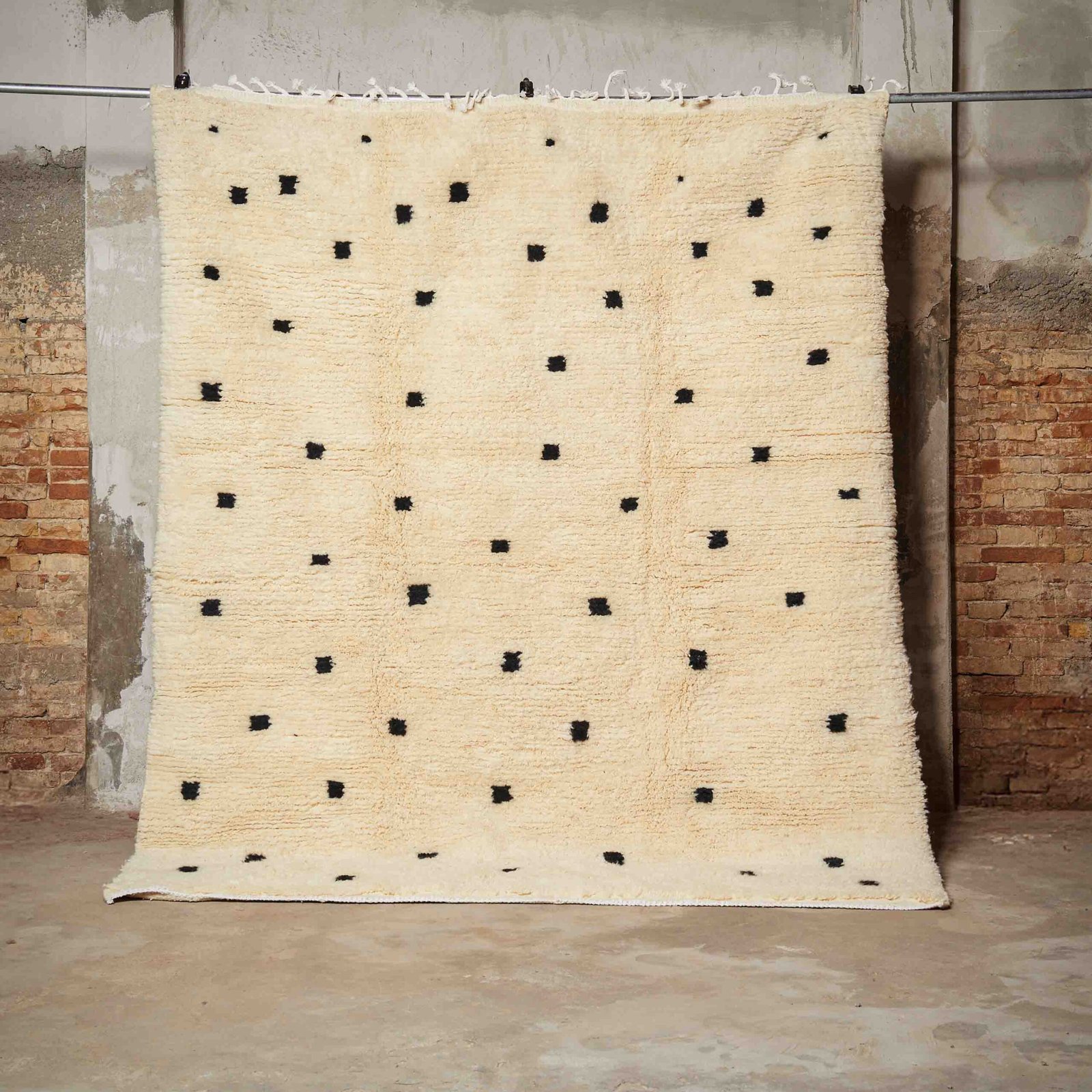 Questo tappeto Beni Ouarain è un capolavoro dell’artigianato marocchino, realizzato a mano con lana naturale di alta qualità. Caratterizzato da un fondo morbido color crema, presenta eleganti motivi geometrici neri minimalisti, distribuiti in modo armonioso sulla superficie. Perfetto per arredare ambienti moderni, boho-chic o scandinavi, dona un tocco di calore e raffinatezza. La sua texture soffice e resistente lo rende ideale per soggiorni, camere da letto o spazi accoglienti dove comfort e stile si incontrano. Un elemento d’arredo senza tempo che unisce tradizione e design contemporaneo, per trasformare ogni spazio in un ambiente elegante e accogliente.