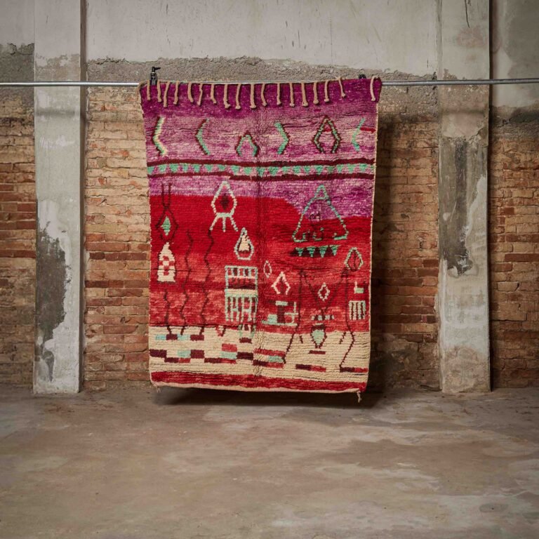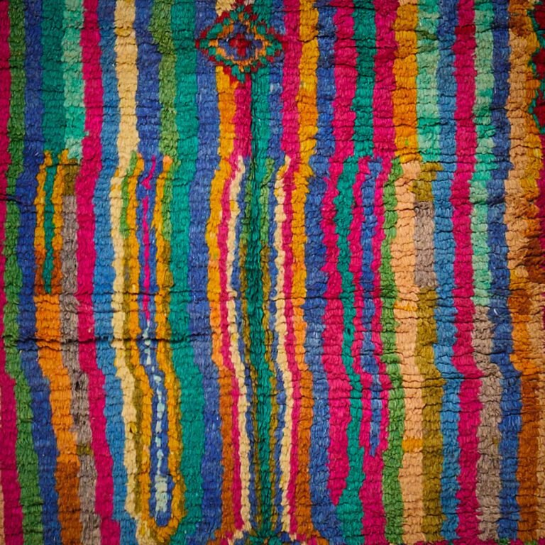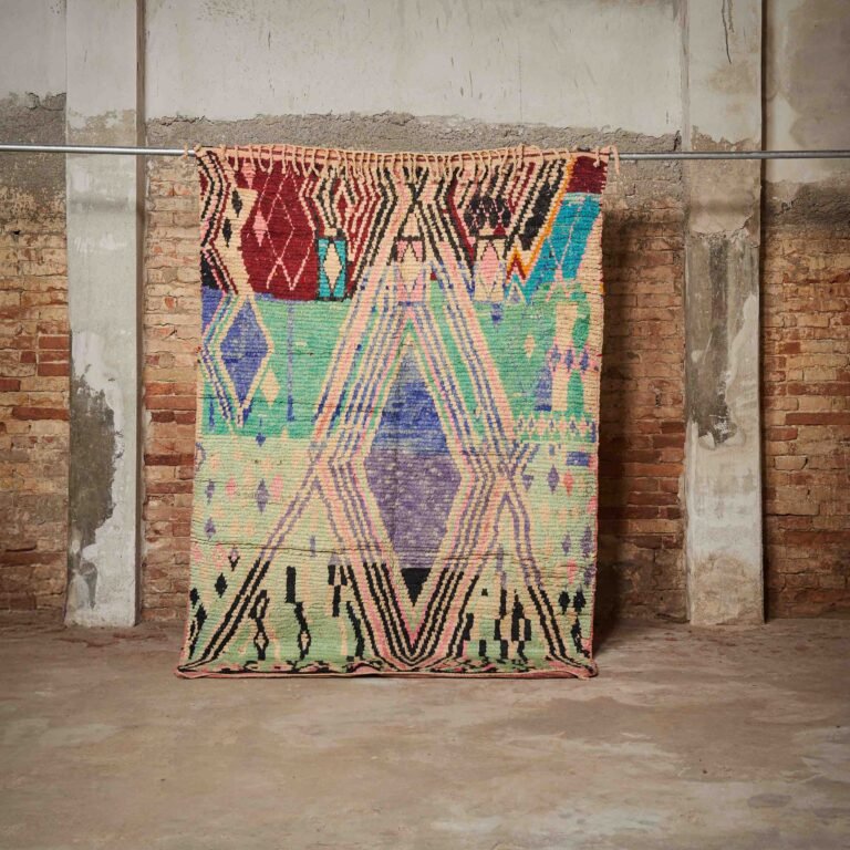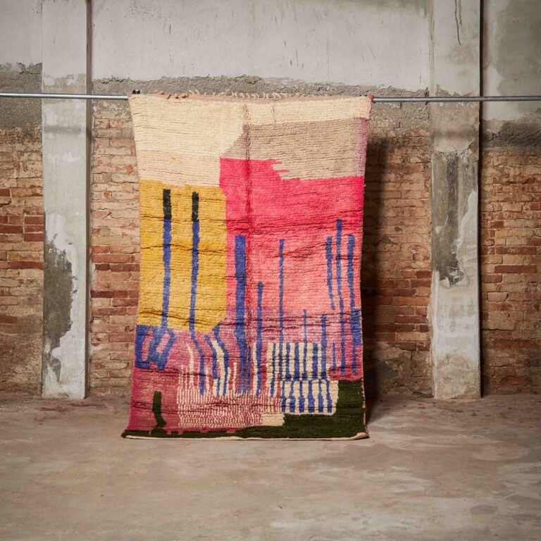 Boujaad è la piccola città del Marocco da cui prendono il nome i tipici tappeti. Chiamato anche il paese dei “mille e uno santi”, Boujaad è stata infatti per secoli una meta spirituale raggiunta da anime in cerca di insegnamenti religiosi. Questa sua aura mistica impregna quelle che sono vere e proprie opere d’arte famose per i loro colori accesi e ricchi. Anche i disegni sorprendono per la grande fantasia, spesso frutto della libertà dell’artigiano tessitore, il quale segue il proprio cuore e racconta la propria vita, tessendo una storia unica.