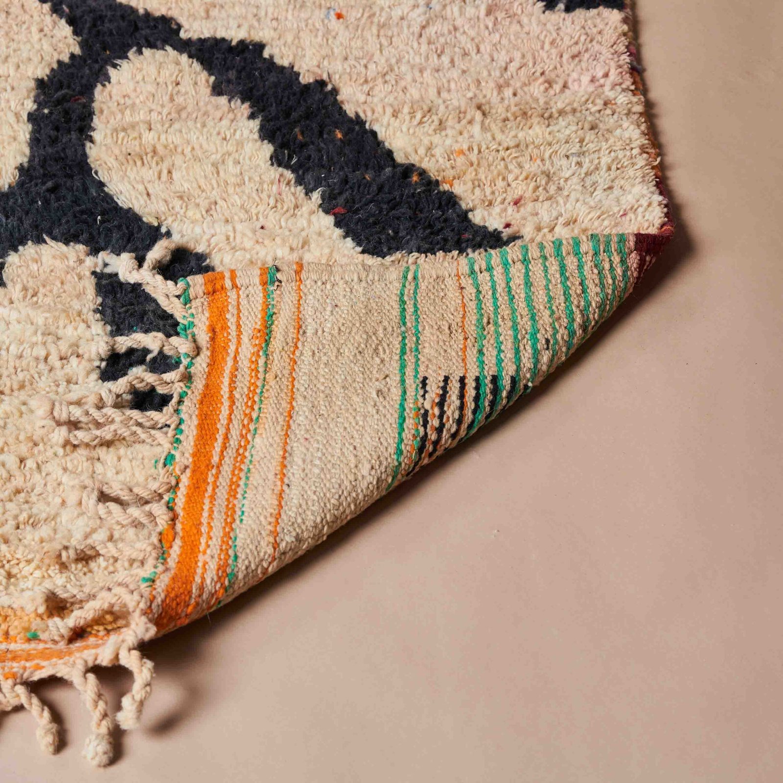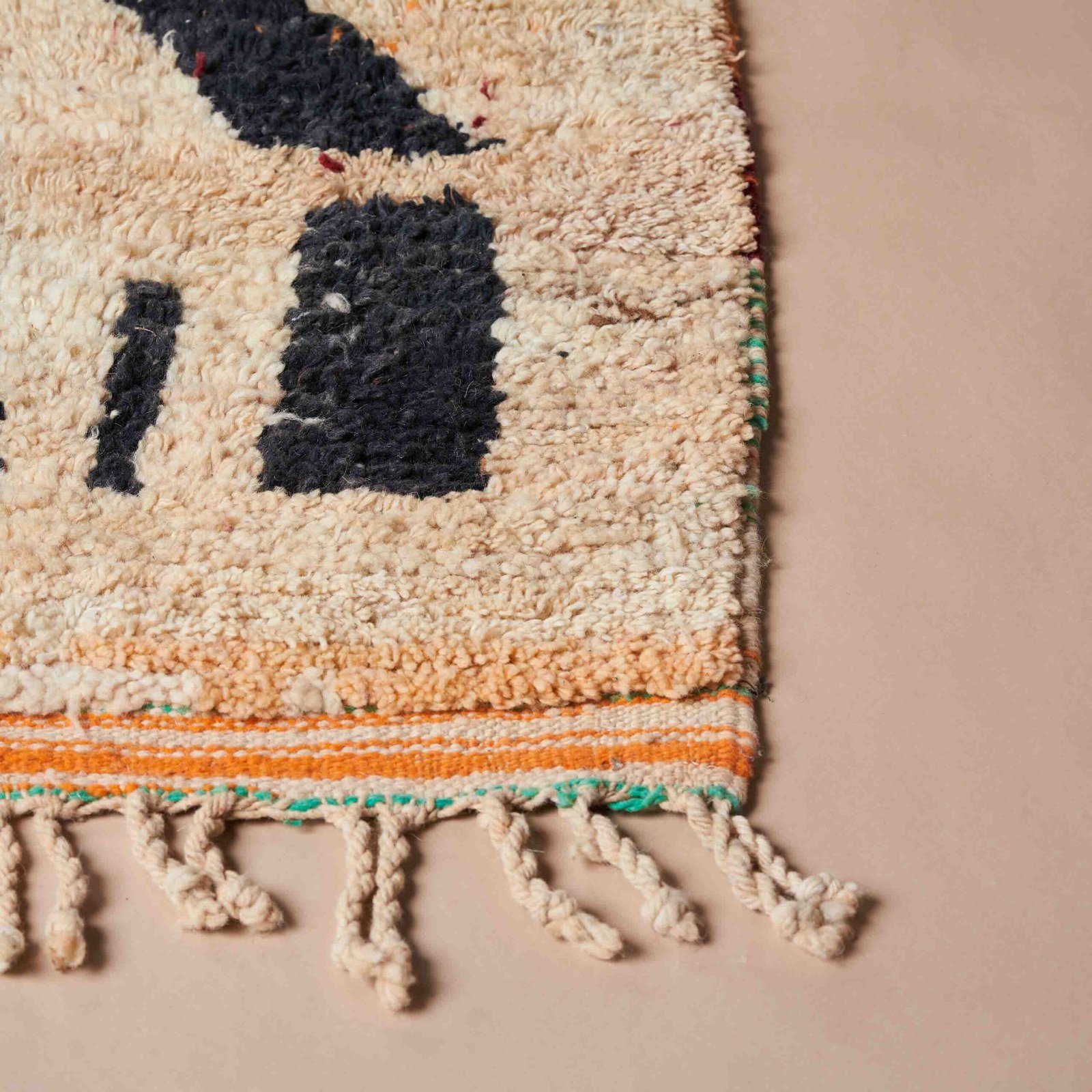 IVA incl.Questo tappeto Boujaad marocchino è un esempio straordinario di design minimalista e arte tradizionale. Le sue tonalità neutre si fondono con motivi astratti in nero intenso, creando un equilibrio visivo unico. Perfetto per spazi contemporanei o rustici, dona stile, autenticità e fascino artigianale agli ambienti, raccontando la storia di antiche tradizioni berbere.