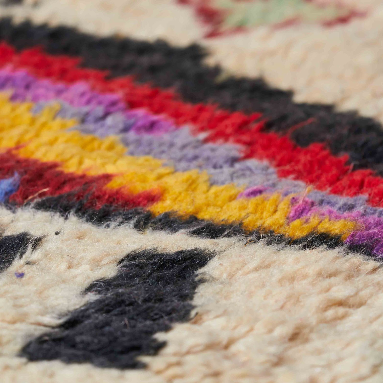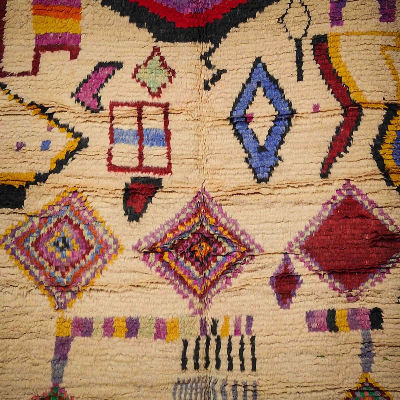 Boujaad è la piccola città del Marocco da cui prendono il nome i tipici tappeti. Chiamato anche il paese dei “mille e uno santi”, Boujaad è stata infatti per secoli una meta spirituale raggiunta da anime in cerca di insegnamenti religiosi. Questa sua aura mistica impregna quelle che sono vere e proprie opere d’arte famose per i loro colori accesi e ricchi, tradizionalmente densi di rosso, arancione e rosa ma che oggi si possono trovare nelle più svariate cromie. Anche i disegni sorprendono per la grande fantasia, spesso frutto della libertà dell’artigiano tessitore, il quale segue il proprio cuore e racconta la propria vita, tessendo una storia unica.