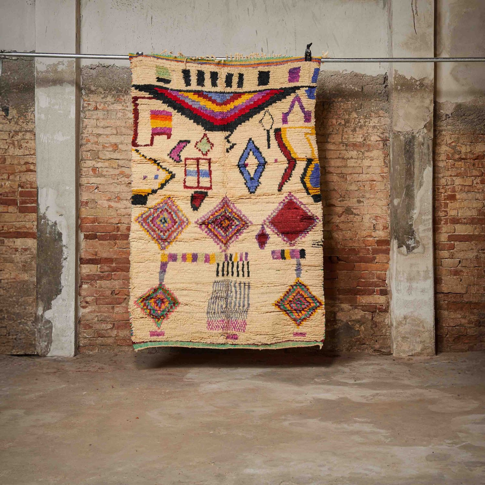 Questo magnifico tappeto Boujaad marocchino è un autentico capolavoro dell’artigianato berbero, perfetto per chi desidera aggiungere un tocco unico e autentico alla propria casa. La sua raffinata combinazione di colori vivaci su una base chiara lo rende estremamente versatile, adatto sia ad ambienti moderni che tradizionali. I dettagli dei motivi geometrici e simbolici, tessuti a mano con estrema precisione, raccontano la storia e la tradizione delle comunità artigiane del Marocco. Realizzato con lana naturale di alta qualità, offre morbidezza, resistenza e un design senza tempo. È l’accessorio ideale per trasformare qualsiasi spazio in un ambiente elegante e accogliente.