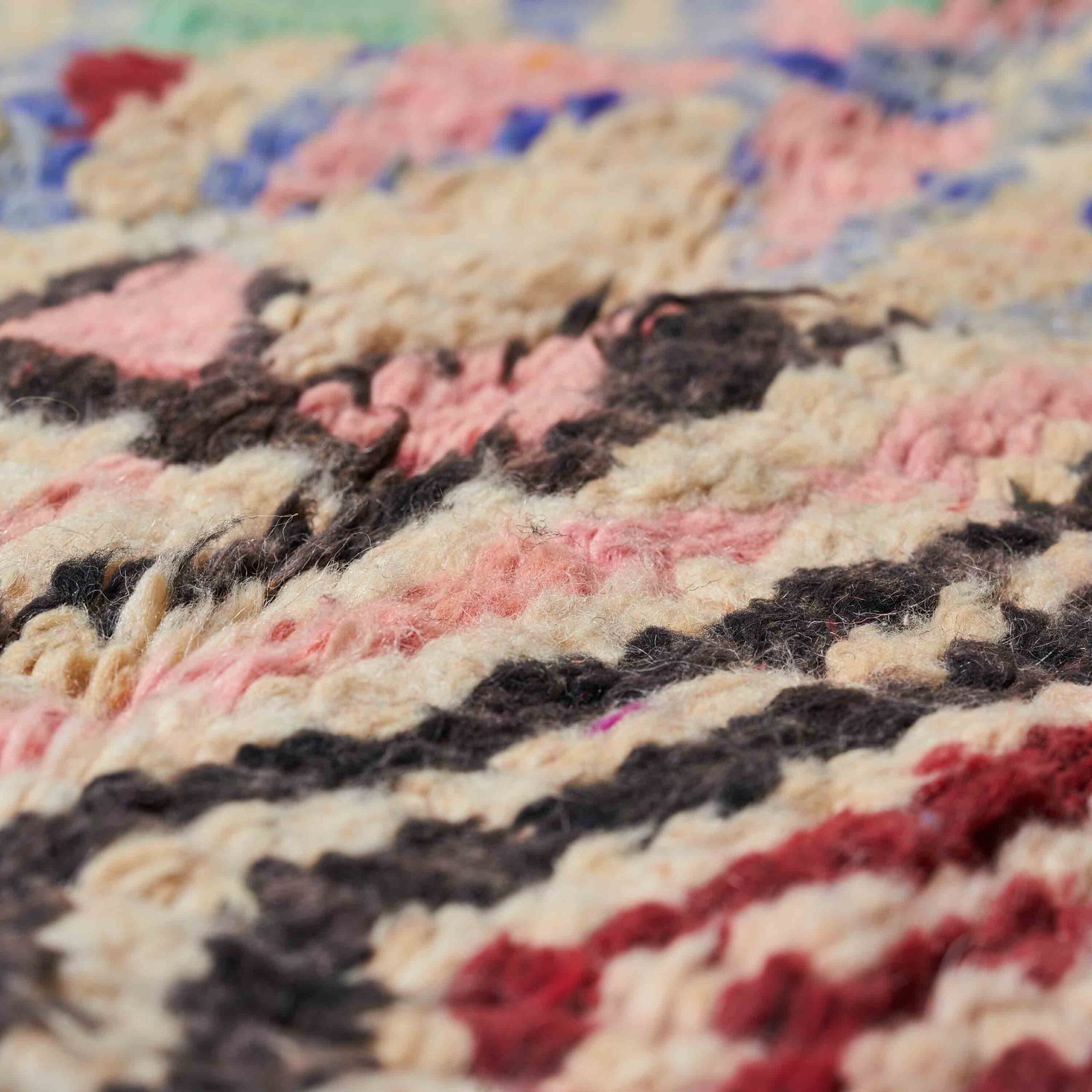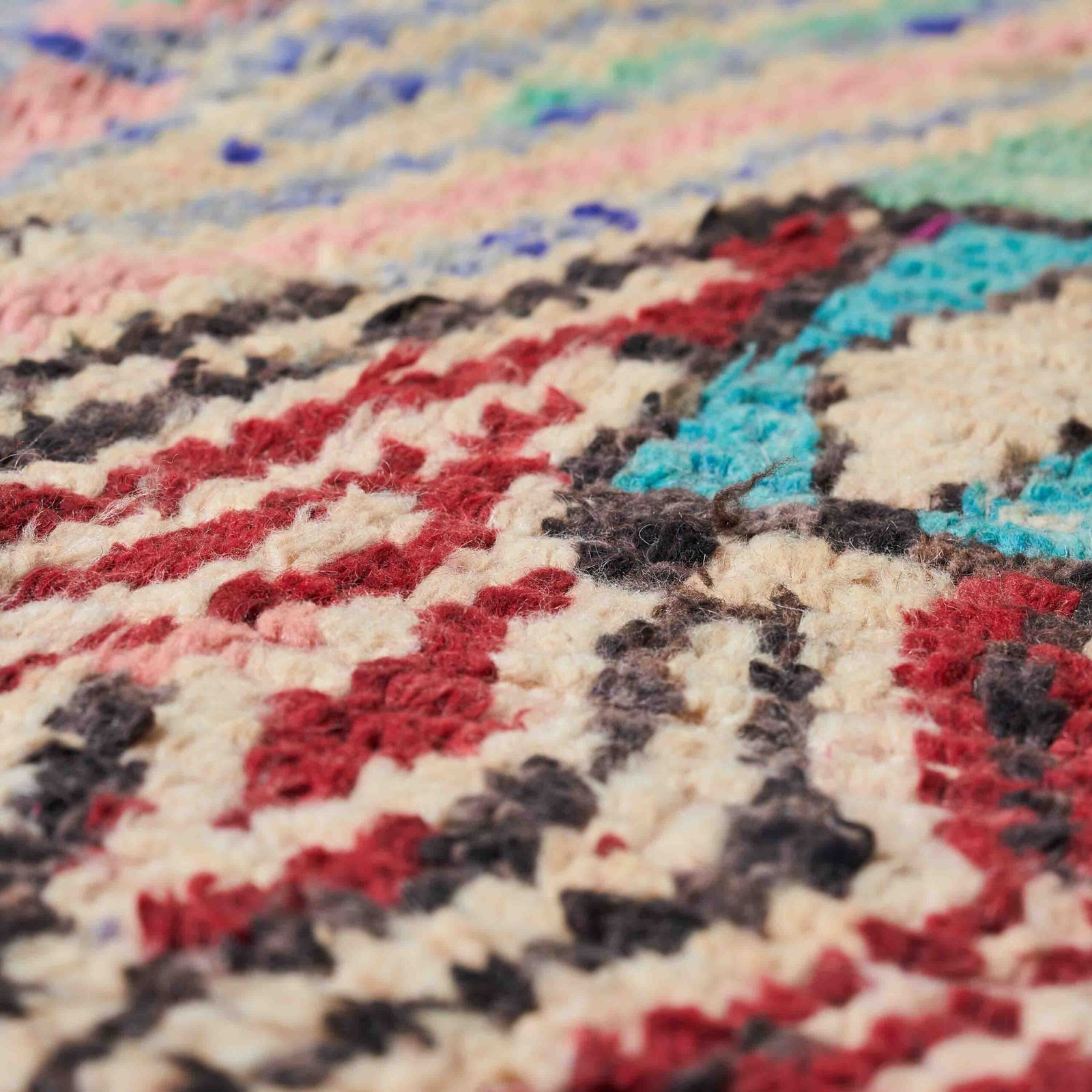 Boujaad è la piccola città del Marocco da cui prendono il nome i tipici tappeti. Chiamato anche il paese dei “mille e uno santi”, Boujaad è stata infatti per secoli una meta spirituale raggiunta da anime in cerca di insegnamenti religiosi. Questa sua aura mistica impregna quelle che sono vere e proprie opere d’arte famose per i loro colori accesi e ricchi, tradizionalmente densi di rosso, arancione e rosa ma che oggi si possono trovare nelle più svariate cromie. Anche i disegni sorprendono per la grande fantasia, spesso frutto della libertà dell’artigiano tessitore, il quale segue il proprio cuore e racconta la propria vita, tessendo una storia unica.
