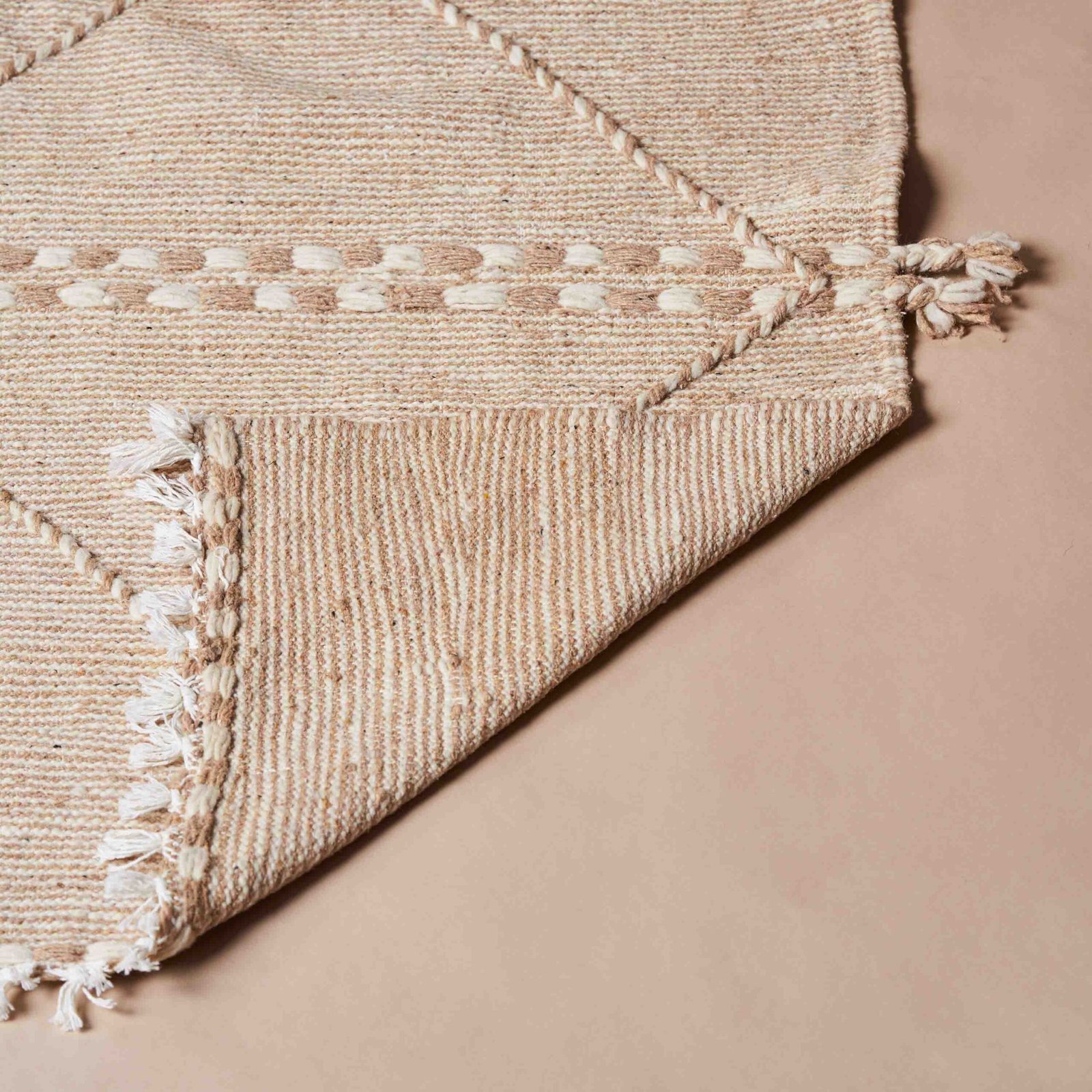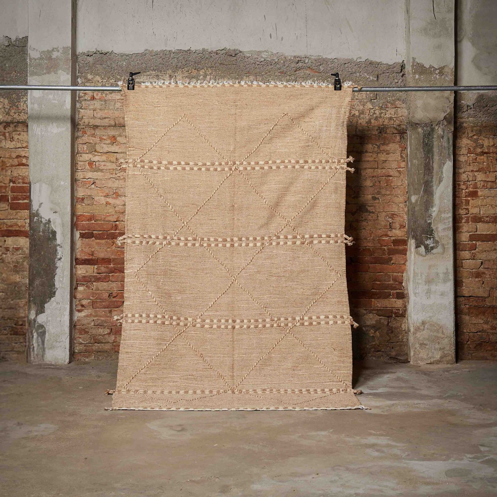 Questo tappeto Kilim beige rappresenta l’essenza della semplicità e dell’eleganza grazie al suo design raffinato e discreto. I motivi geometrici a rombi intrecciati si alternano armoniosamente con delicate decorazioni a rilievo, creando un effetto visivo che richiama tradizioni artigianali di grande valore. Realizzato interamente a mano con fibre naturali di alta qualità, garantisce una combinazione perfetta tra bellezza estetica e resistenza nel tempo. La tonalità neutra del beige lo rende estremamente versatile, adattandosi a vari stili di arredamento, dal minimalista al boho-chic. Ideale per arricchire qualsiasi ambiente, dona calore, autenticità e un tocco di artigianalità senza tempo alla casa.